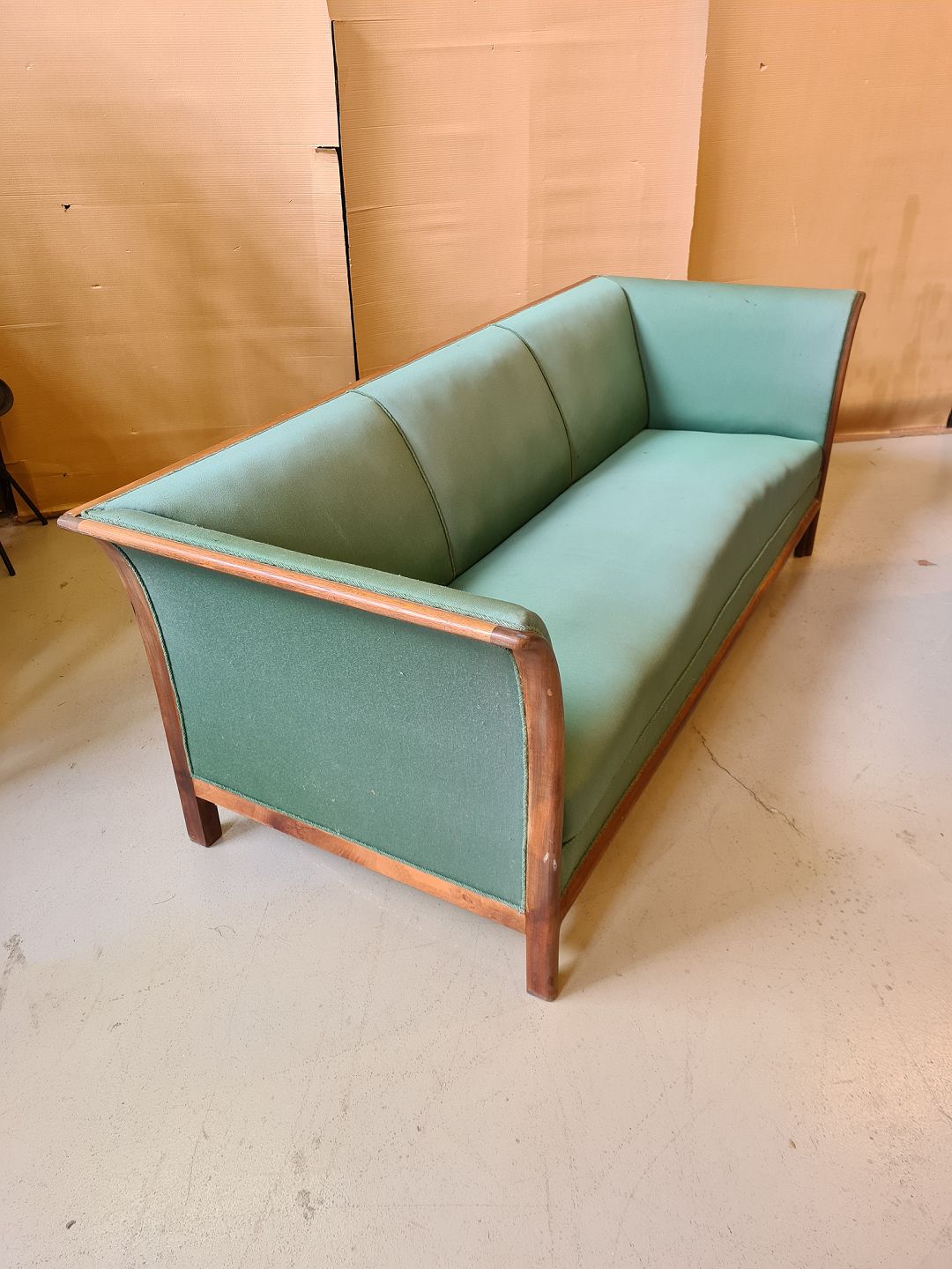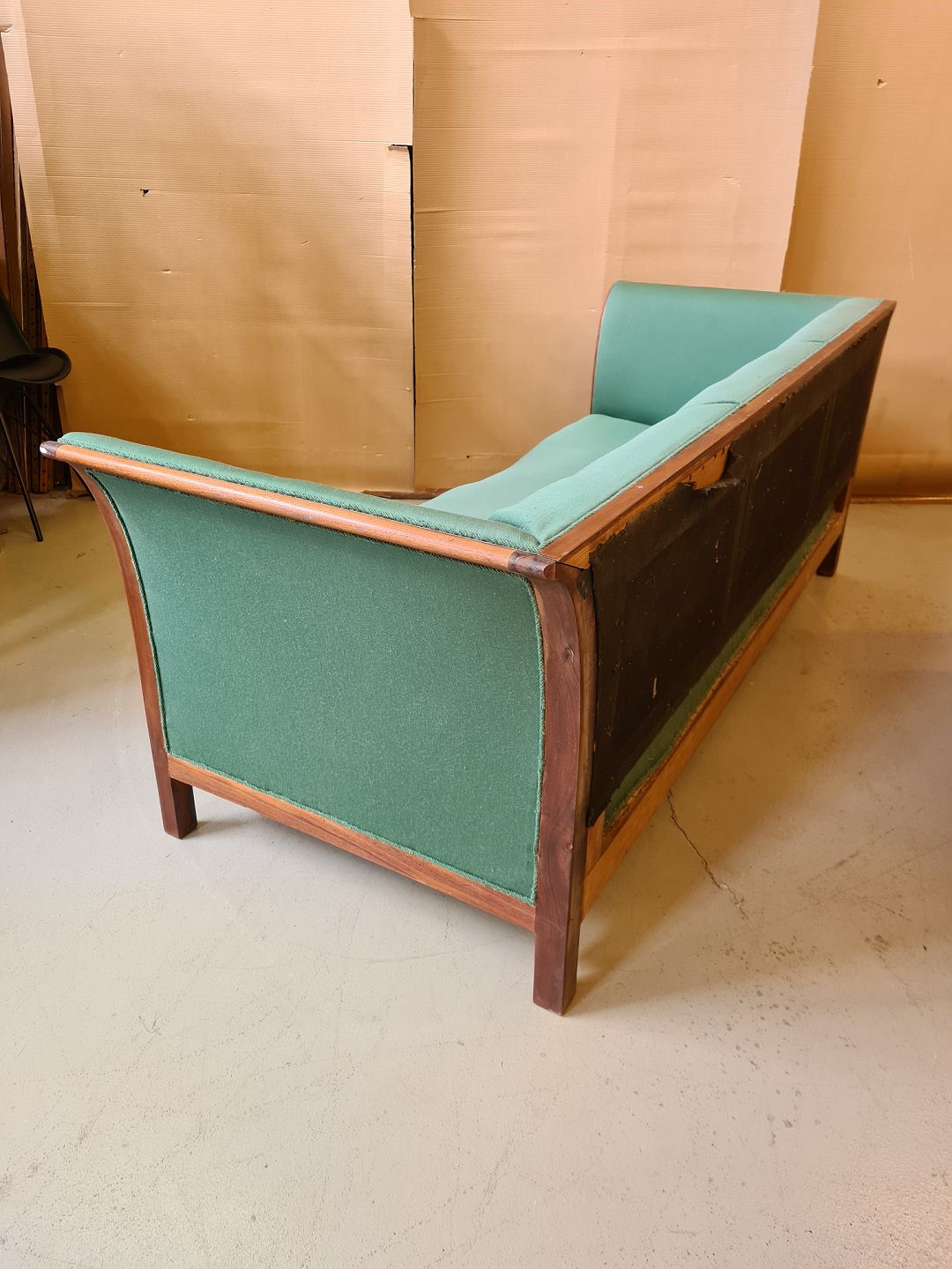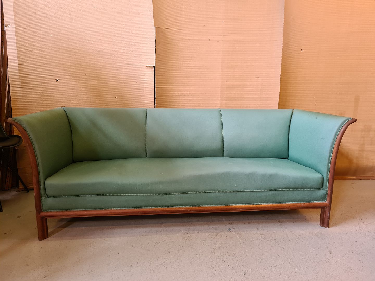 Sofa med massiv mahogni ramme, fra 1950erne.