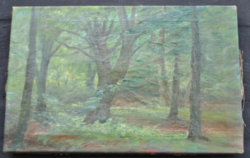 Gyde Petersen, Hans (1862 - 1943) Danmark: Skov scene. Olie på lærred. Signeret GP 1906. 25 x 39 cm.