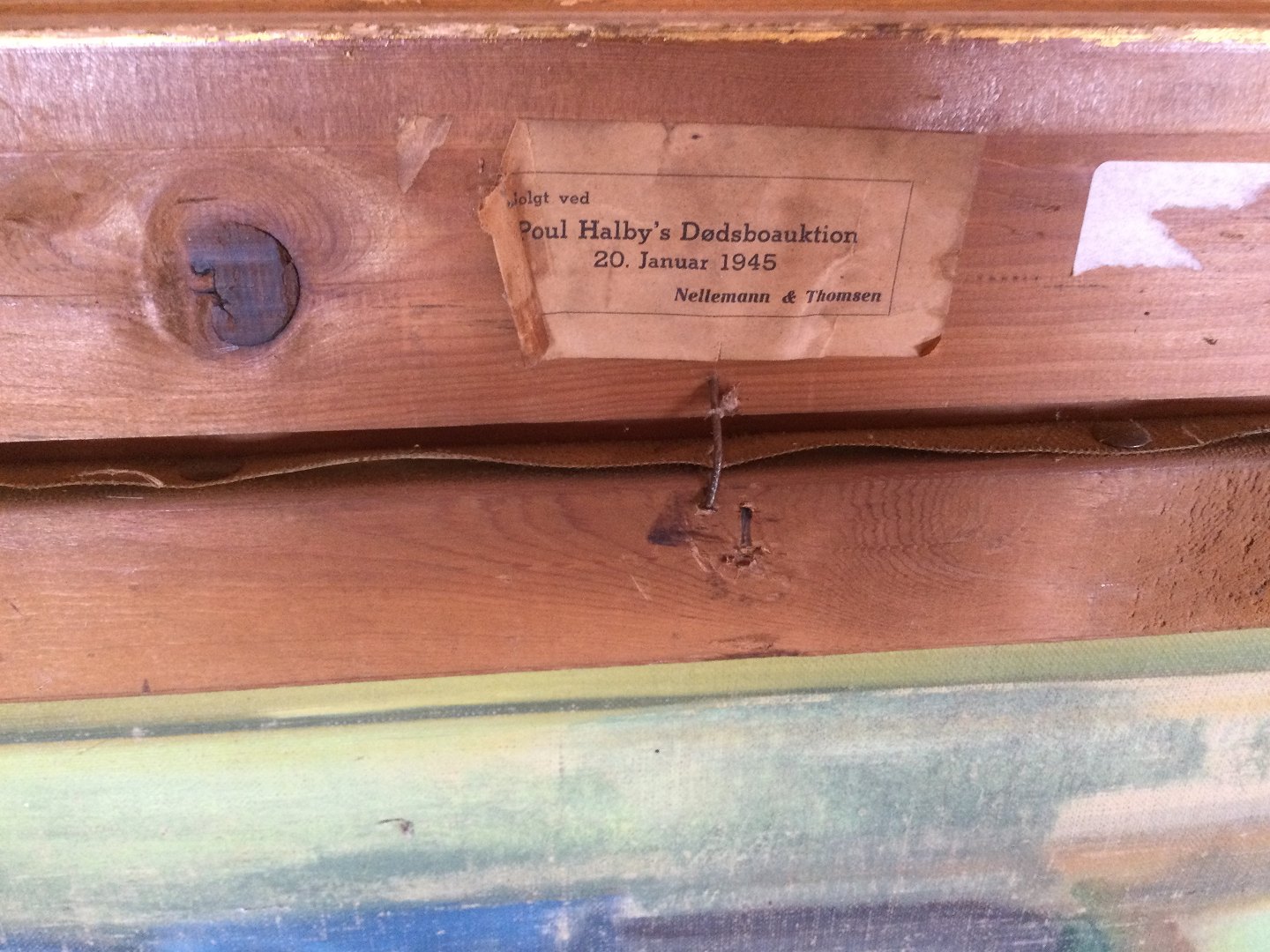 Bagpå label fra Poul Halbys Dødsboauktion Nellemann & Thomsen 20/1 1945.