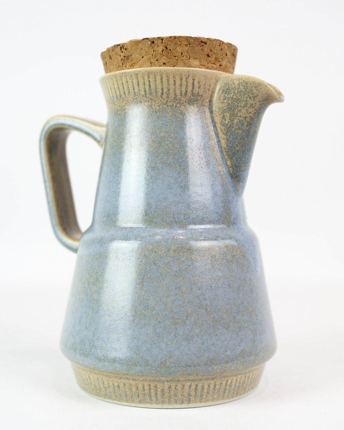 Knabstrup kaffekande af Nødebo stentøj i blå farver fra omkring 1970'erne.