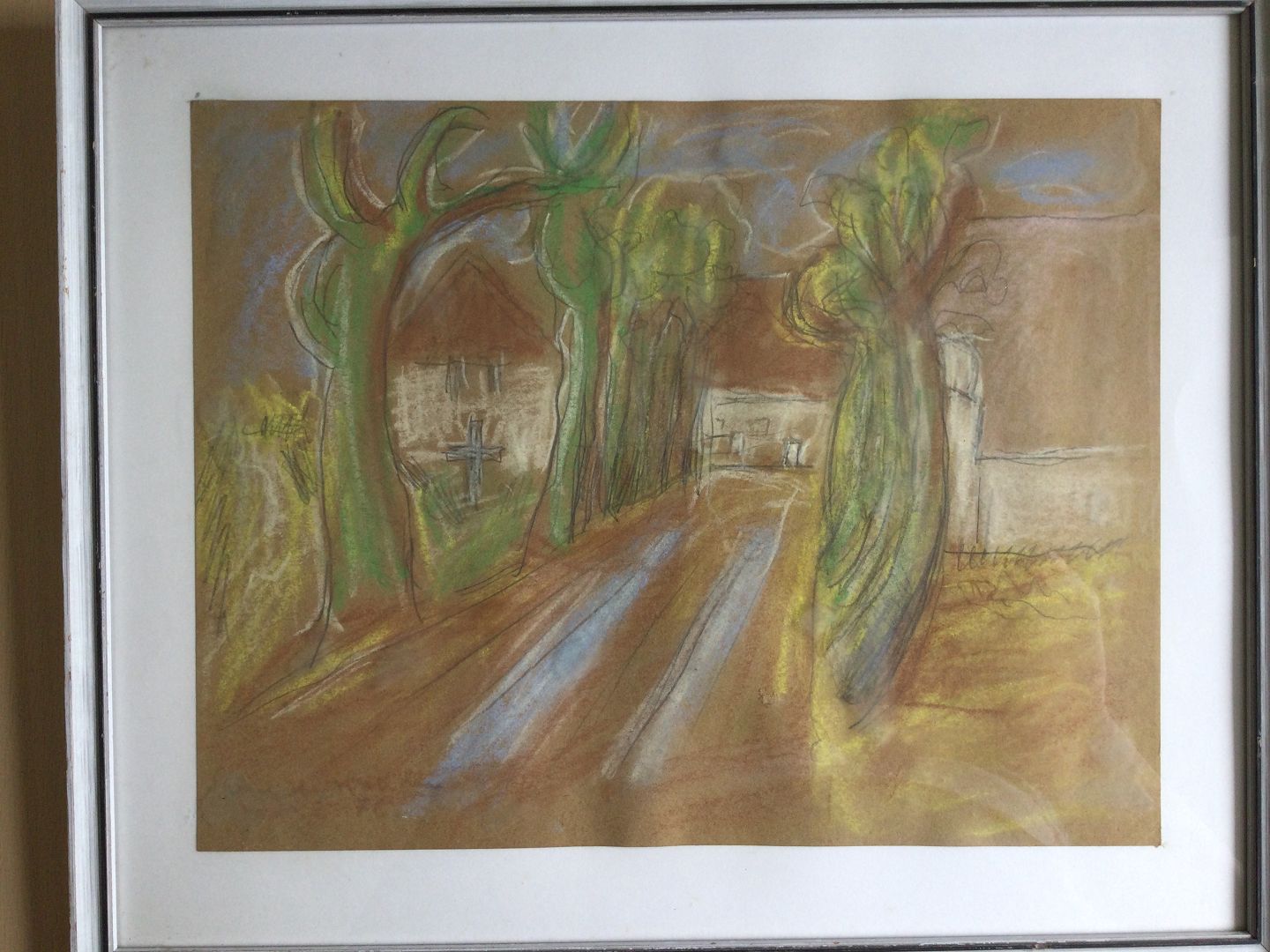 Pastel af Axel H. Halldin - Stynede træer ved Kirkegård 1976.