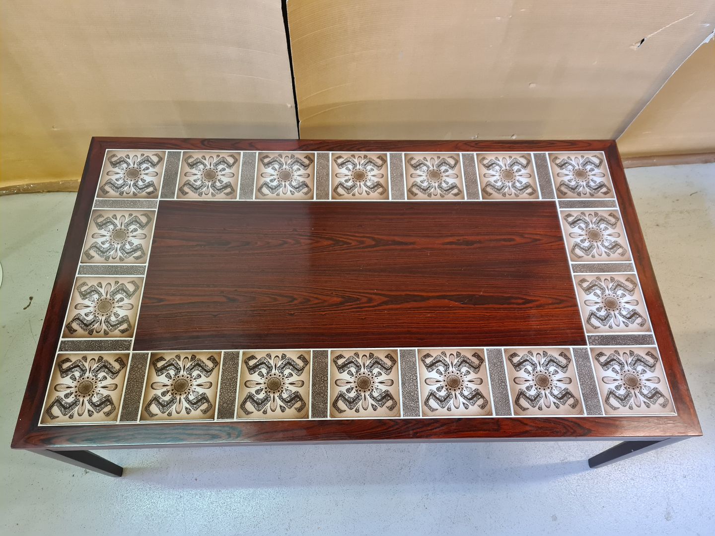 Sofabord i fineret palisander med kakler, fra 1980erne.