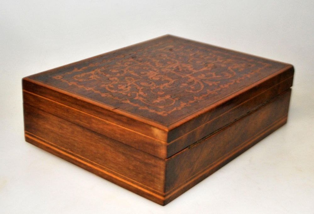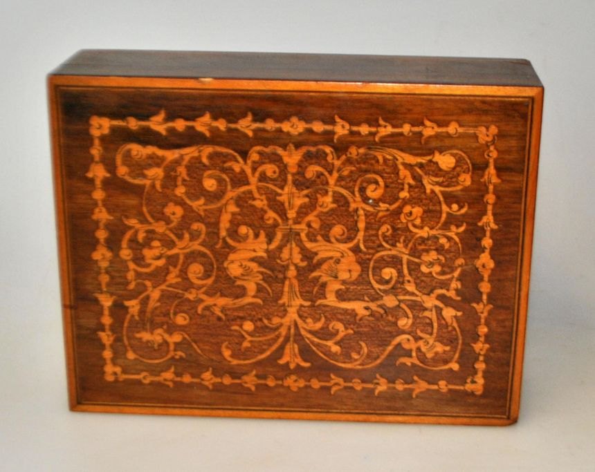 Italiensk mahogni skrin med indlægninger, 19./20. årh. 4 x 10,5 x 14 cm.