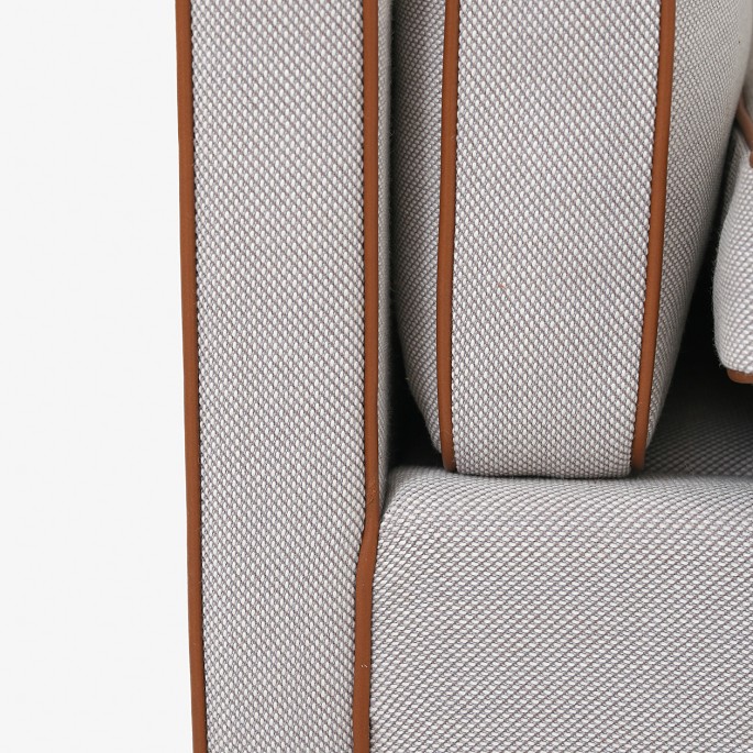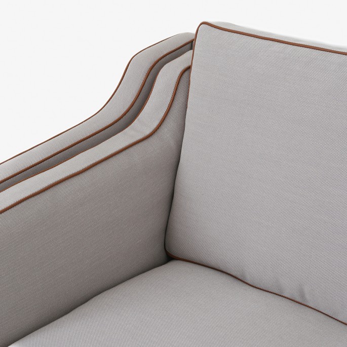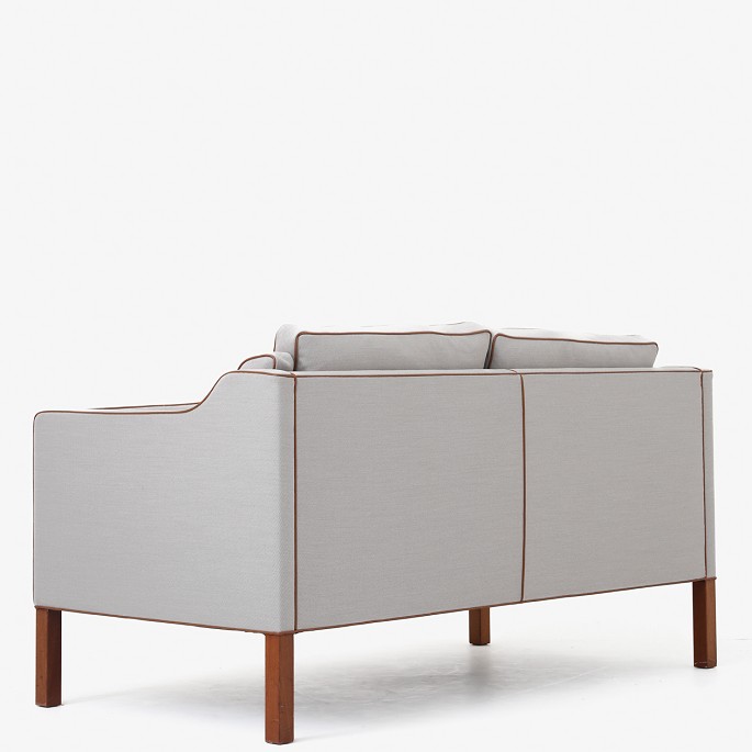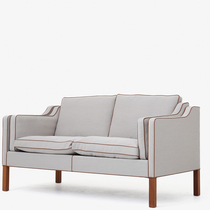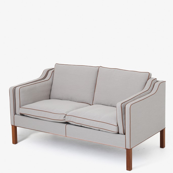 BM 2212 - Nybetrukket 2 pers. sofa i nyt tekstil - Steelcut Trio (farve 203) med keder i Elegance Walnut-læder og ben i mahogni. KLASSIK tilbyder polstring af sofaen med stof eller læder efter eget valg.