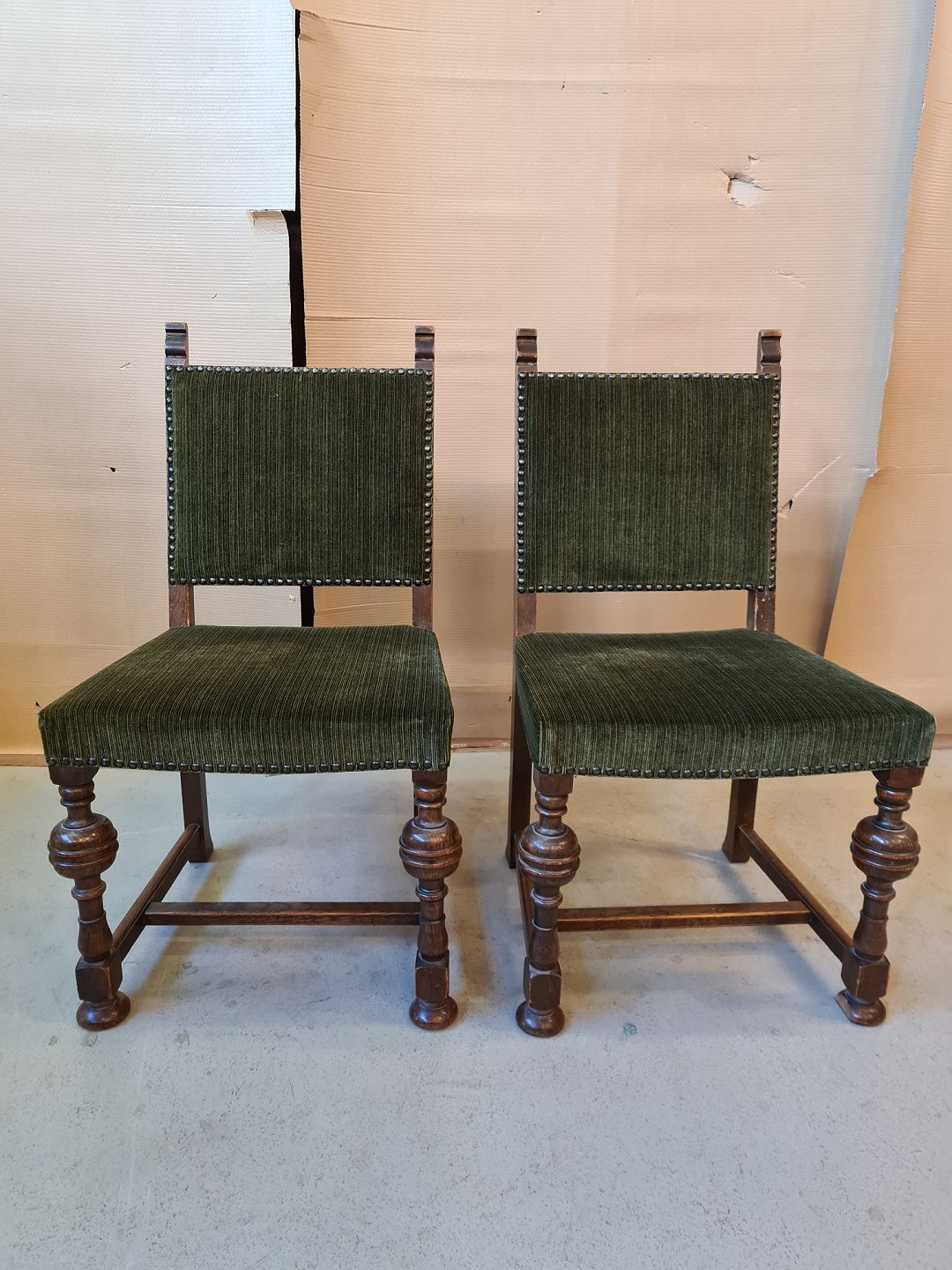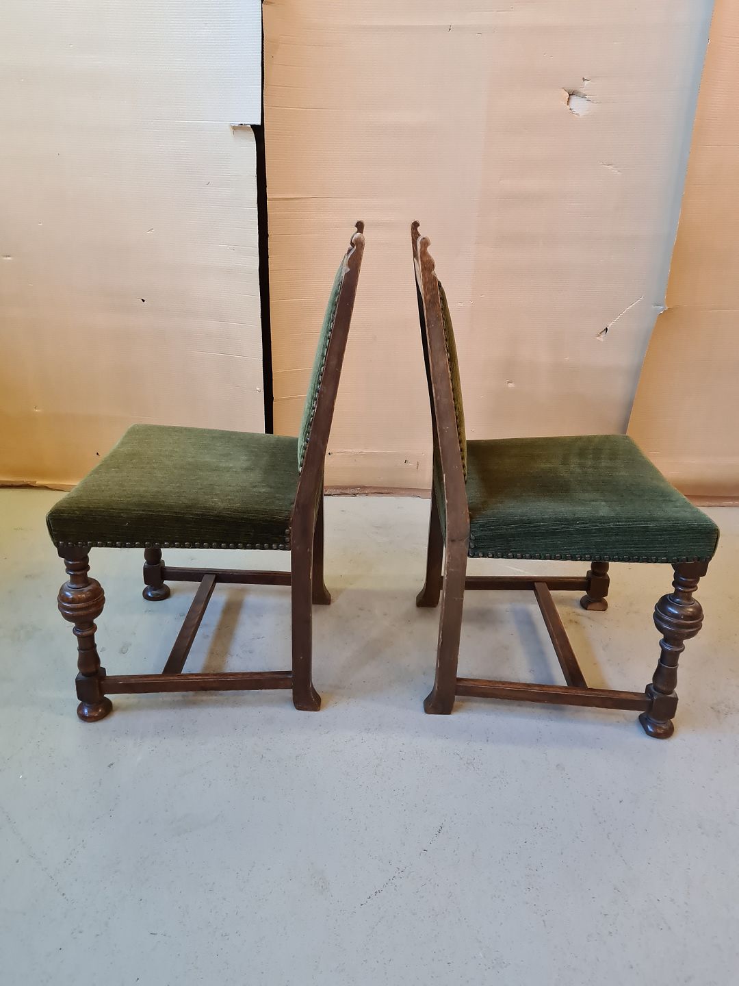 2 Stole i massivt egetræ med velour betræk, fra 1930erne.