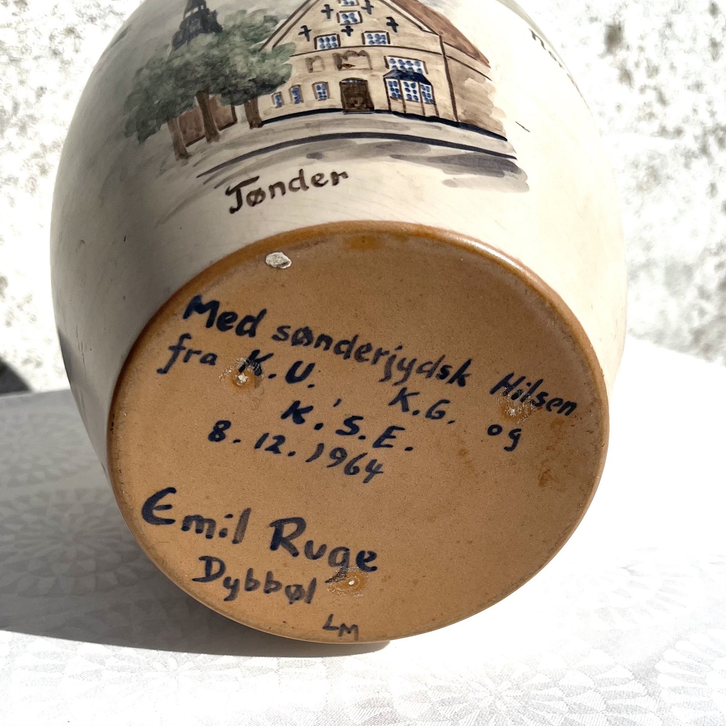 | Vase, Sønder Jylland, Turistvase, 27,5cm høj, 21cm bred, - Med Sønderjysk hilsen, Design Emil Ruge Dybbøl *Pæn stand med lettere brugsspor*