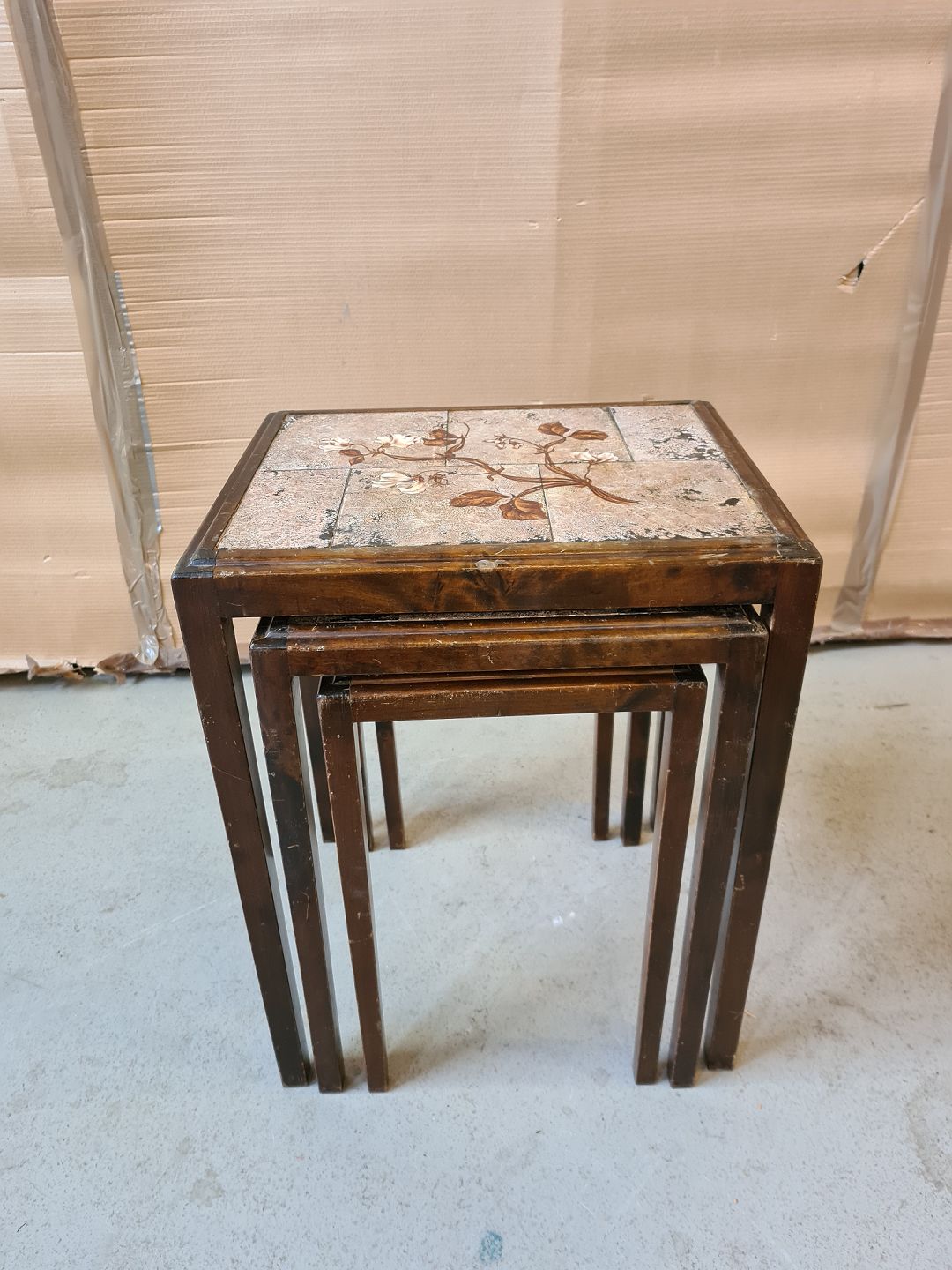 3 Indskudsborde i birketræ med kakler, fra 1950erne.