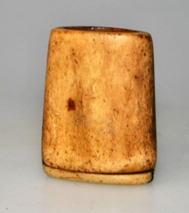 Lille Grønlandsk bæger af ben/knogle, 19./20. årh. Bund påskruet med tre små messingskruer. H: 4,5 cm.