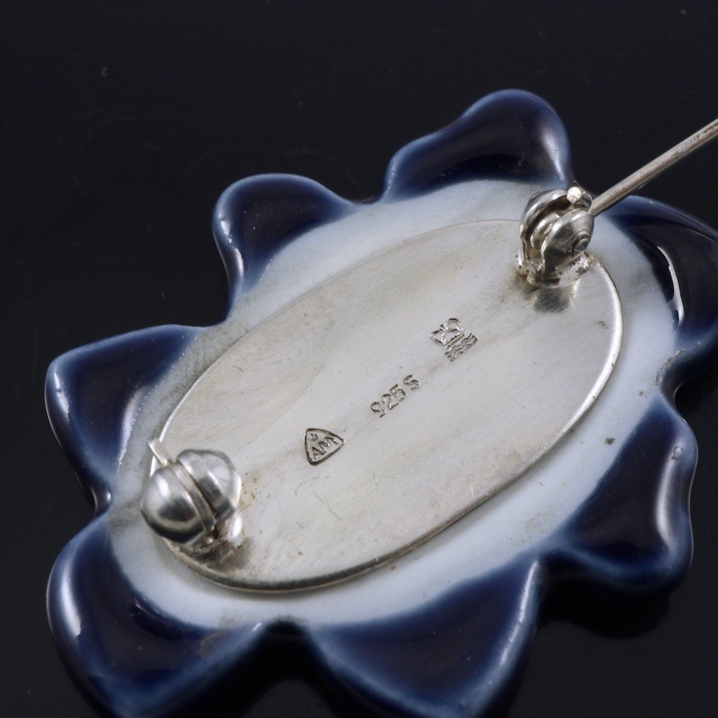A. Michelsen / Royal Copenhagen. Broche i sterlingsølv og porcelæn.