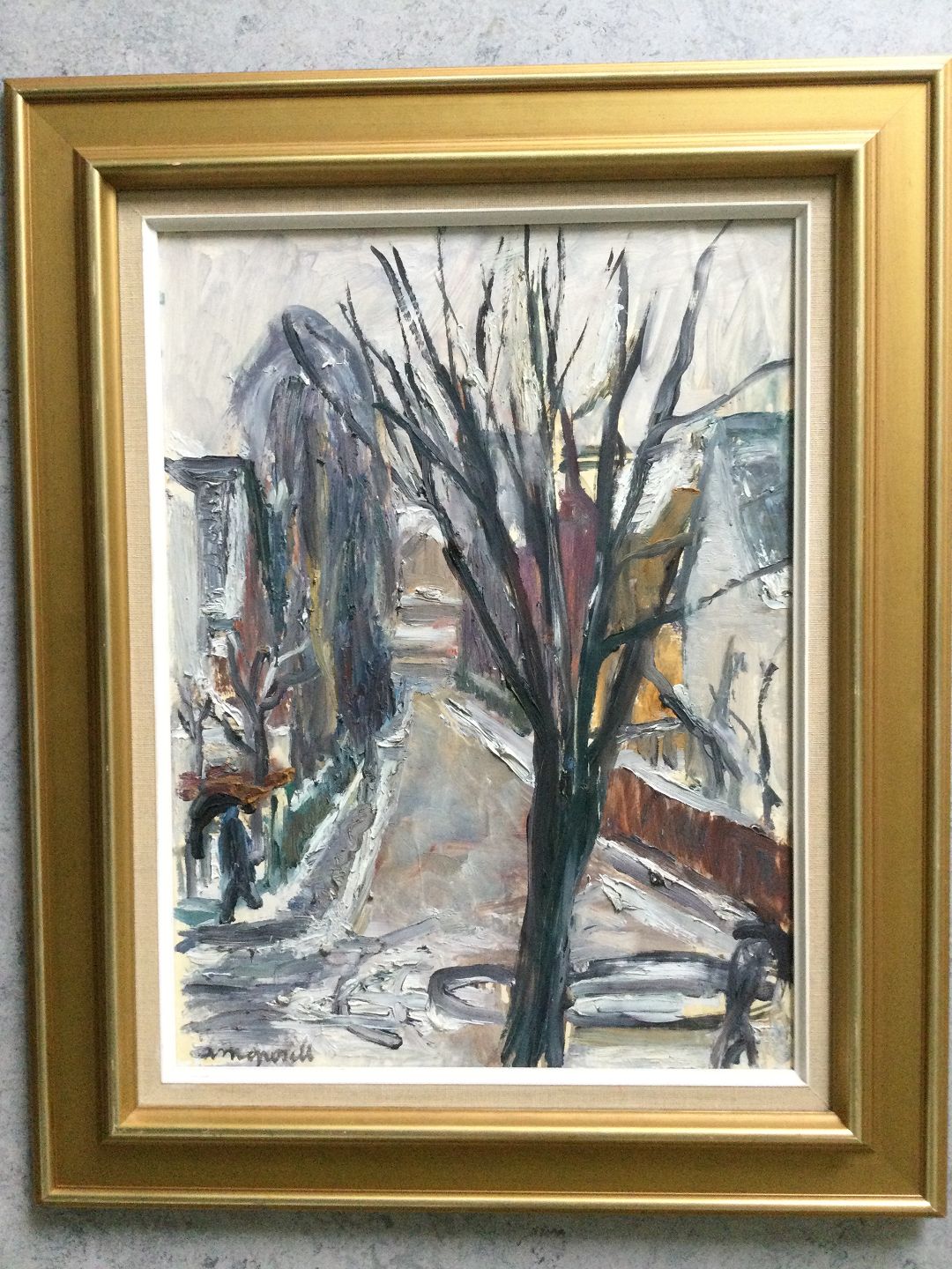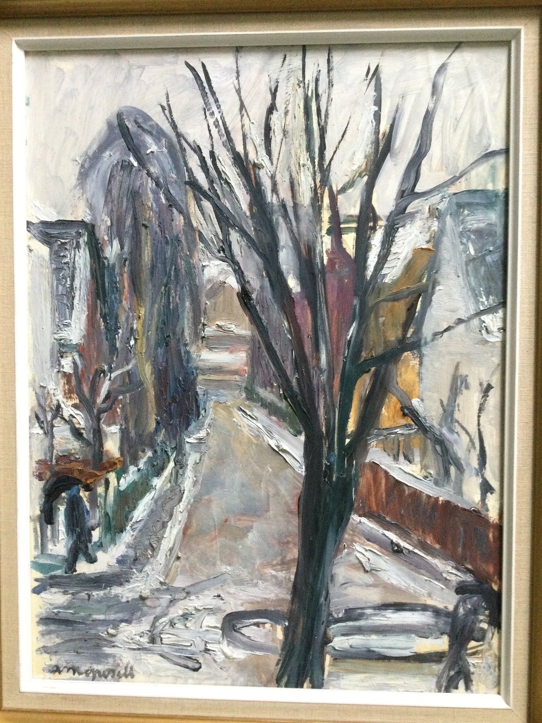 Maleri 1972 af Anne Margrethe Grosell - Vinterlandskab.