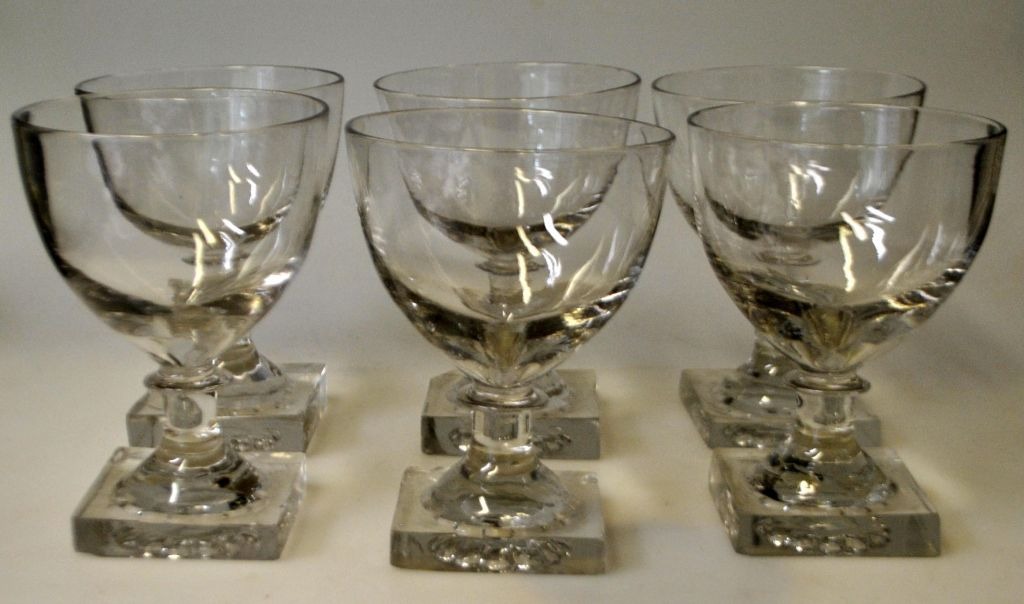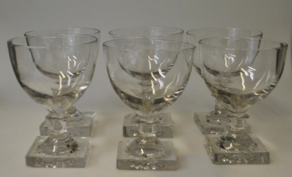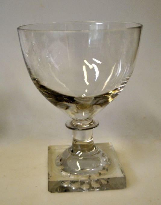 Gorm den Gamle vin glas, Holmegård, 20. årh. Danmark. Glas kumme, firkantet fod med opstukket blomst. Højde: 12,5 cm. Dia. kumme: 9 cm.