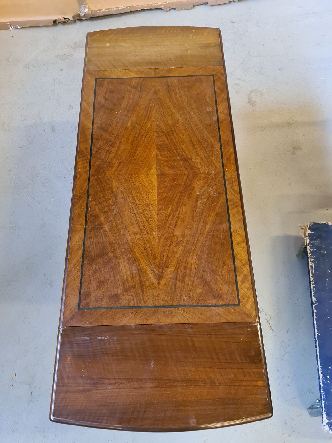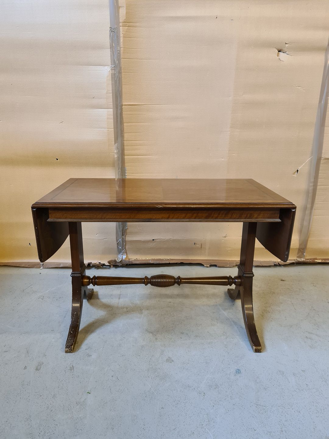 Sofabord med klapper i fineret nødetræ, fra 1950erne.