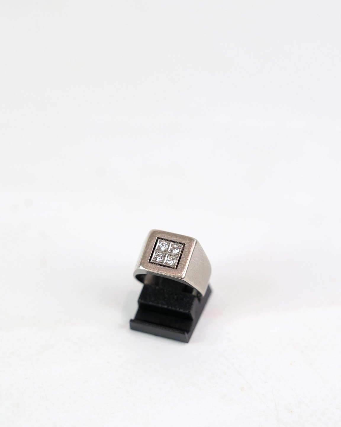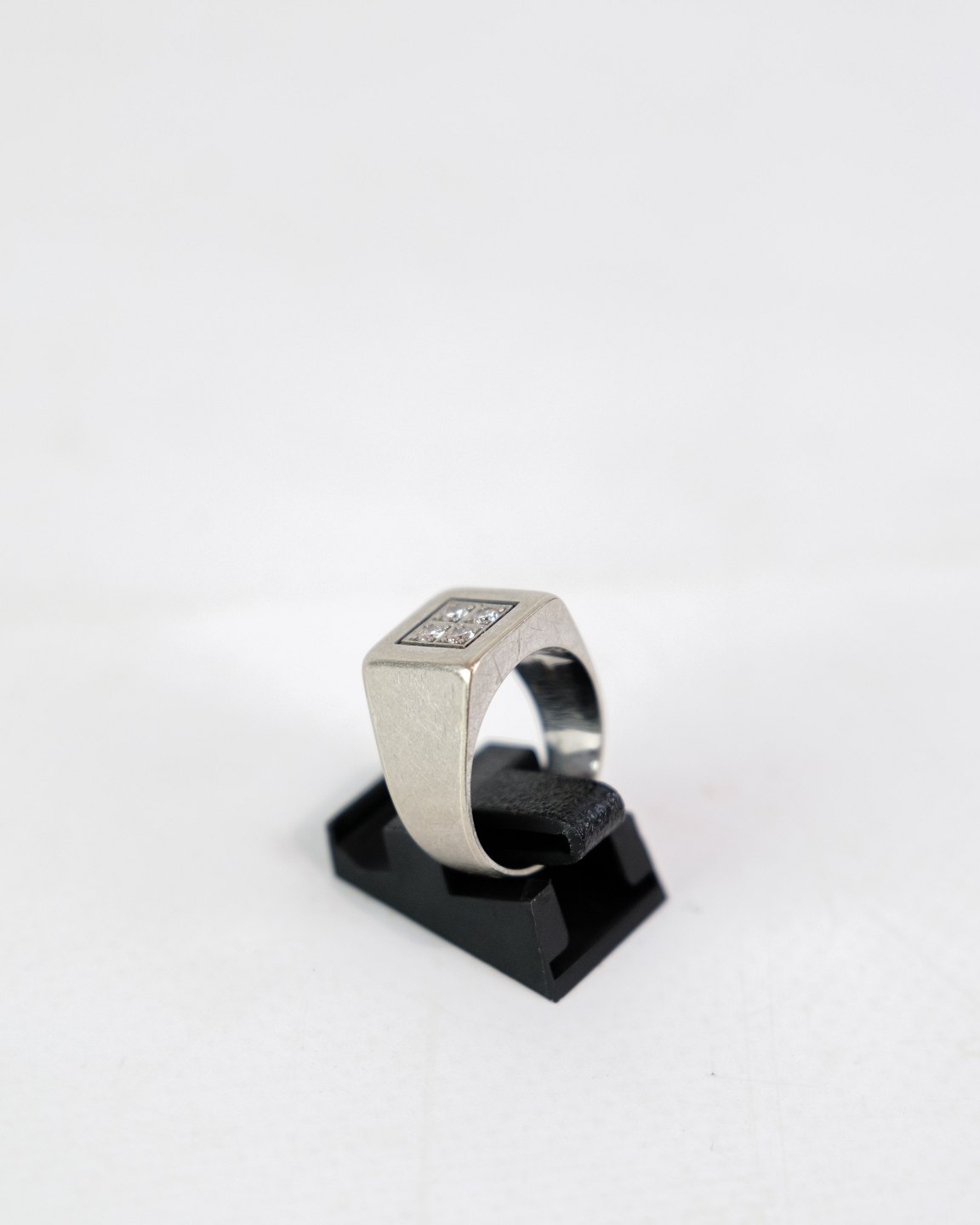 Hvidguldsring stemplet 585 med brillanter 0,020 karat (4 gange 0,05) af sølvsmeden B.J. Str 54