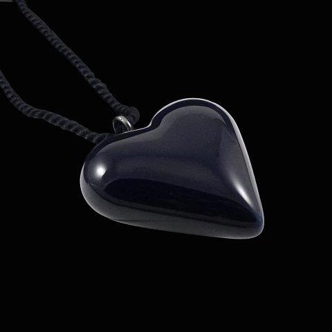 Royal Copenhagen. Hjertevedhæng i porcelæn med sterlingsølv.