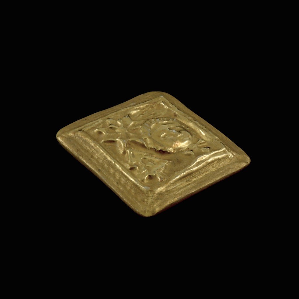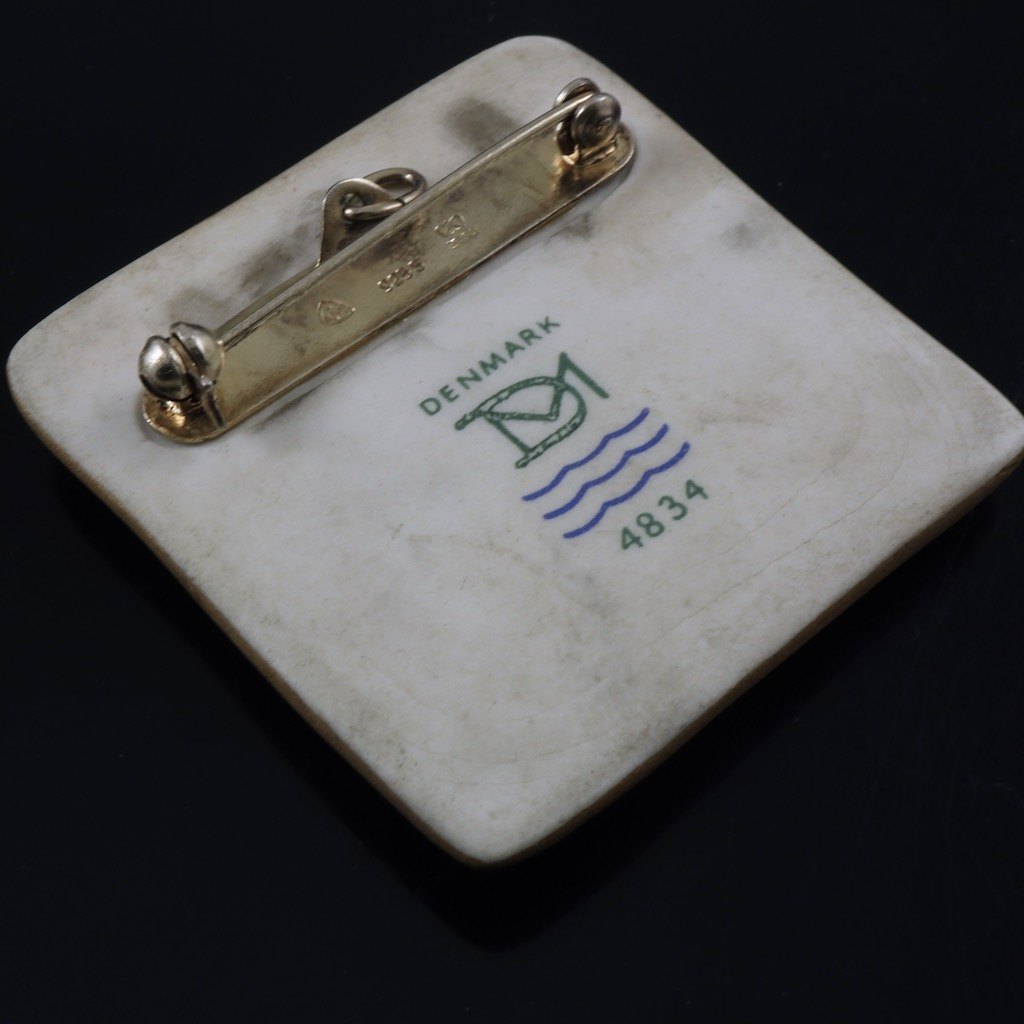 A. Michelsen / Royal Copenhagen. Broche/vedhæng i sterlingsølv og forgyldt porcelæn. #4834.