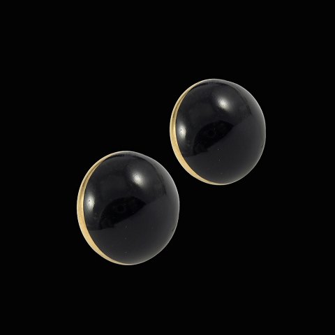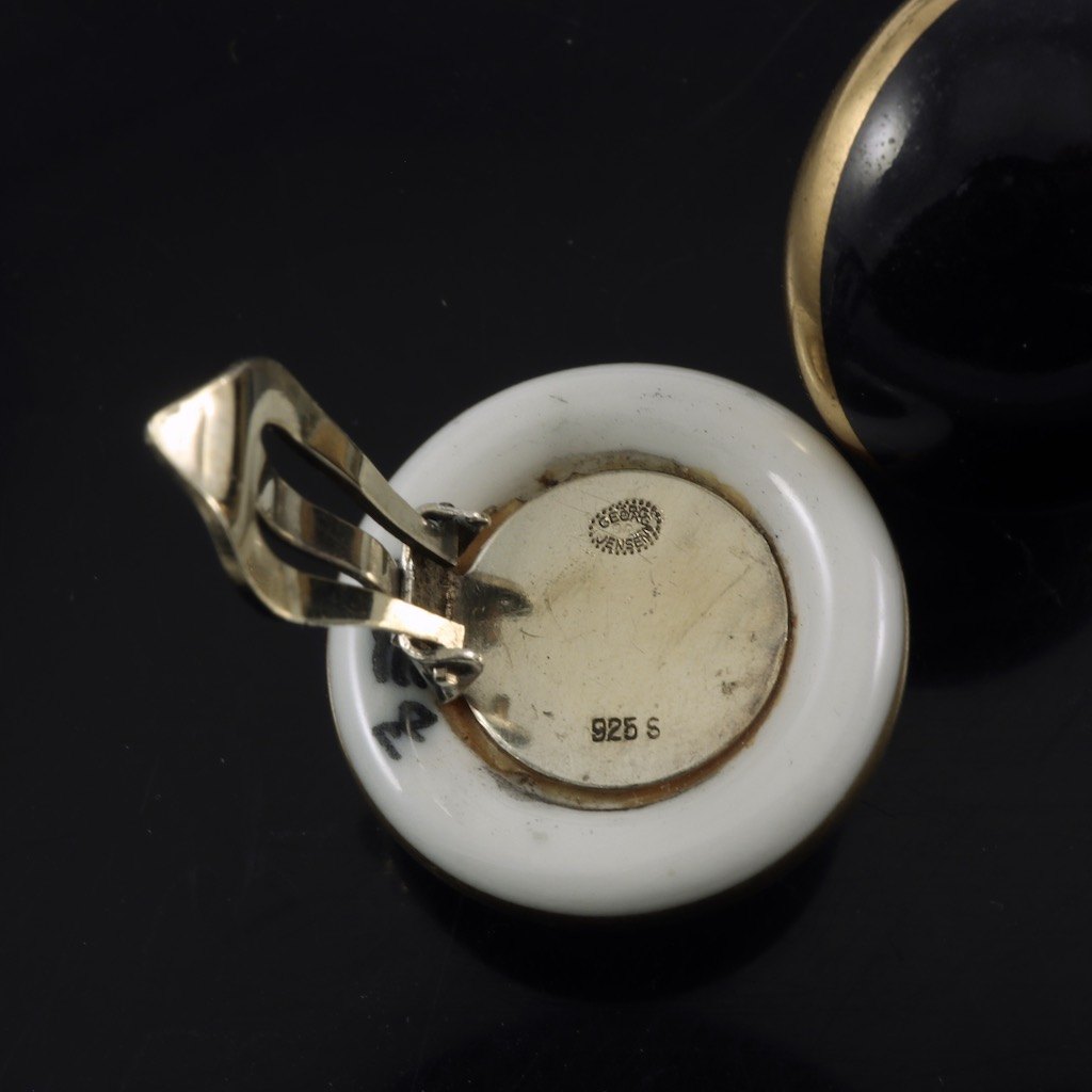 Georg Jensen / Royal Copenhagen. Porcelain and Gilded Sterling Silver Ear Clips.
