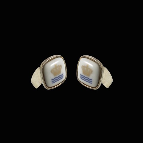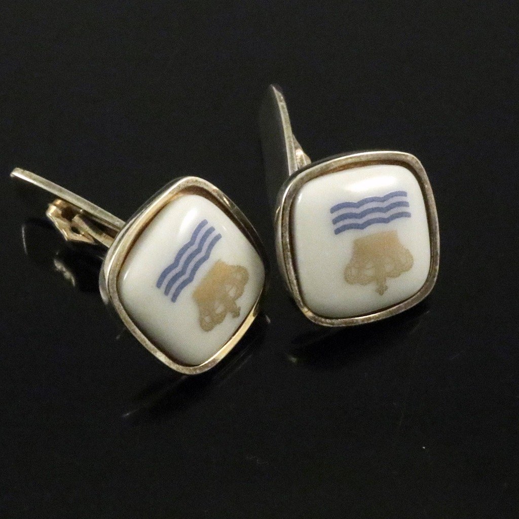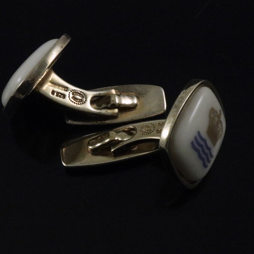 Georg Jensen / Royal Copenhagen. Manchetknapper i forgyldt sterlingsølv og porcelæn.
