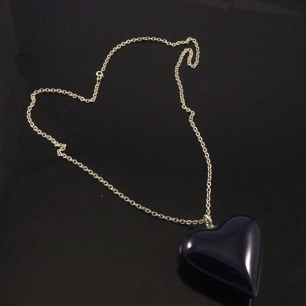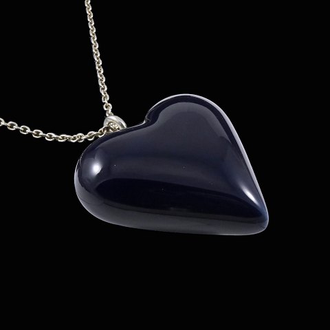 Royal Copenhagen. Hjertevedhæng i porcelæn med sterlingsølv.