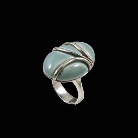Royal Copenhagen. Ring i sterlingsølv med porcelæn.