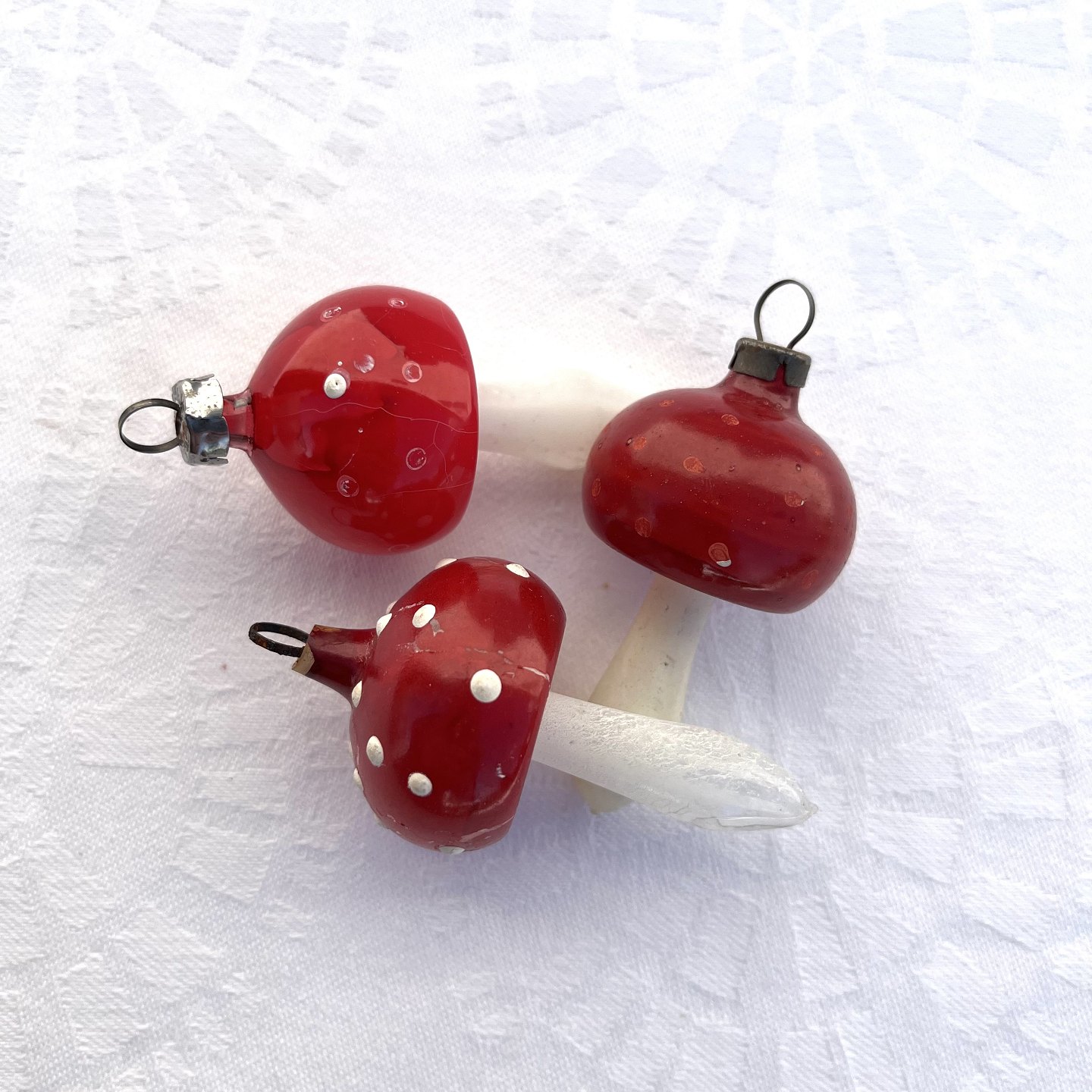 Glas julepynt, Røde fluesvampe, Sælges samlet, *Patineret - de hvide prikker er noget afskallet *