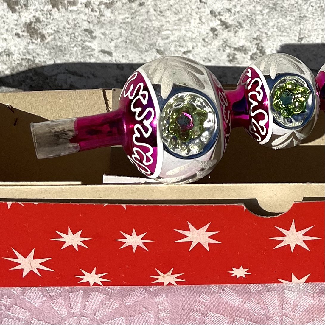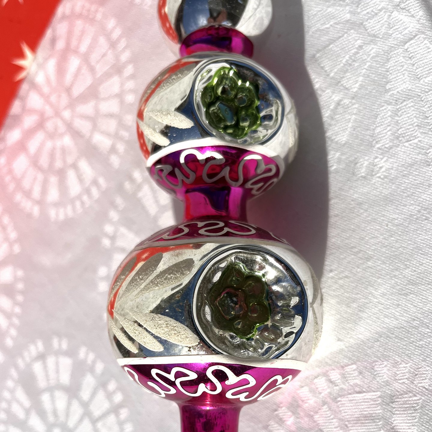 Glas julespir, Med reflektorer, 28cm høj *Pæn stand*