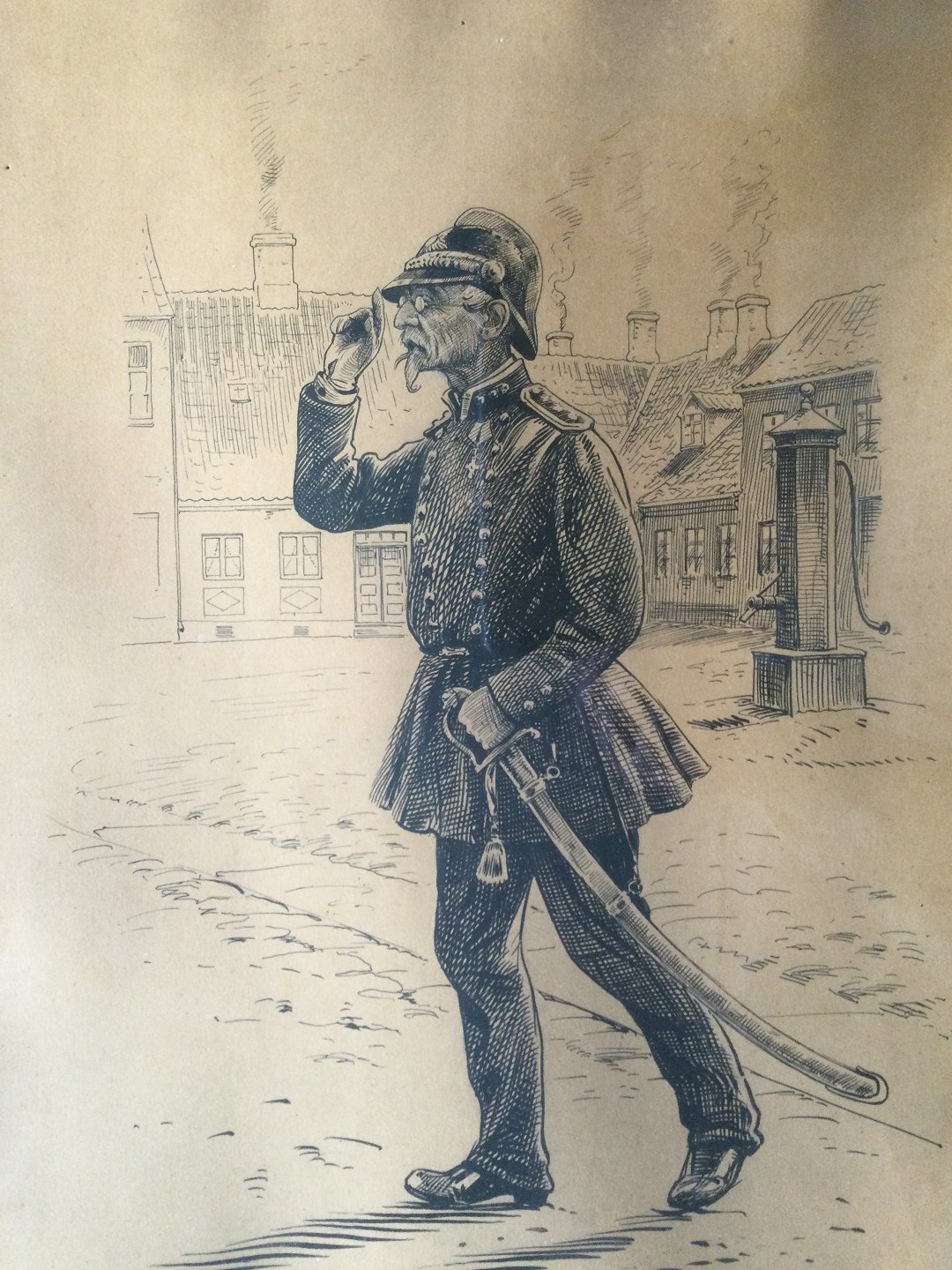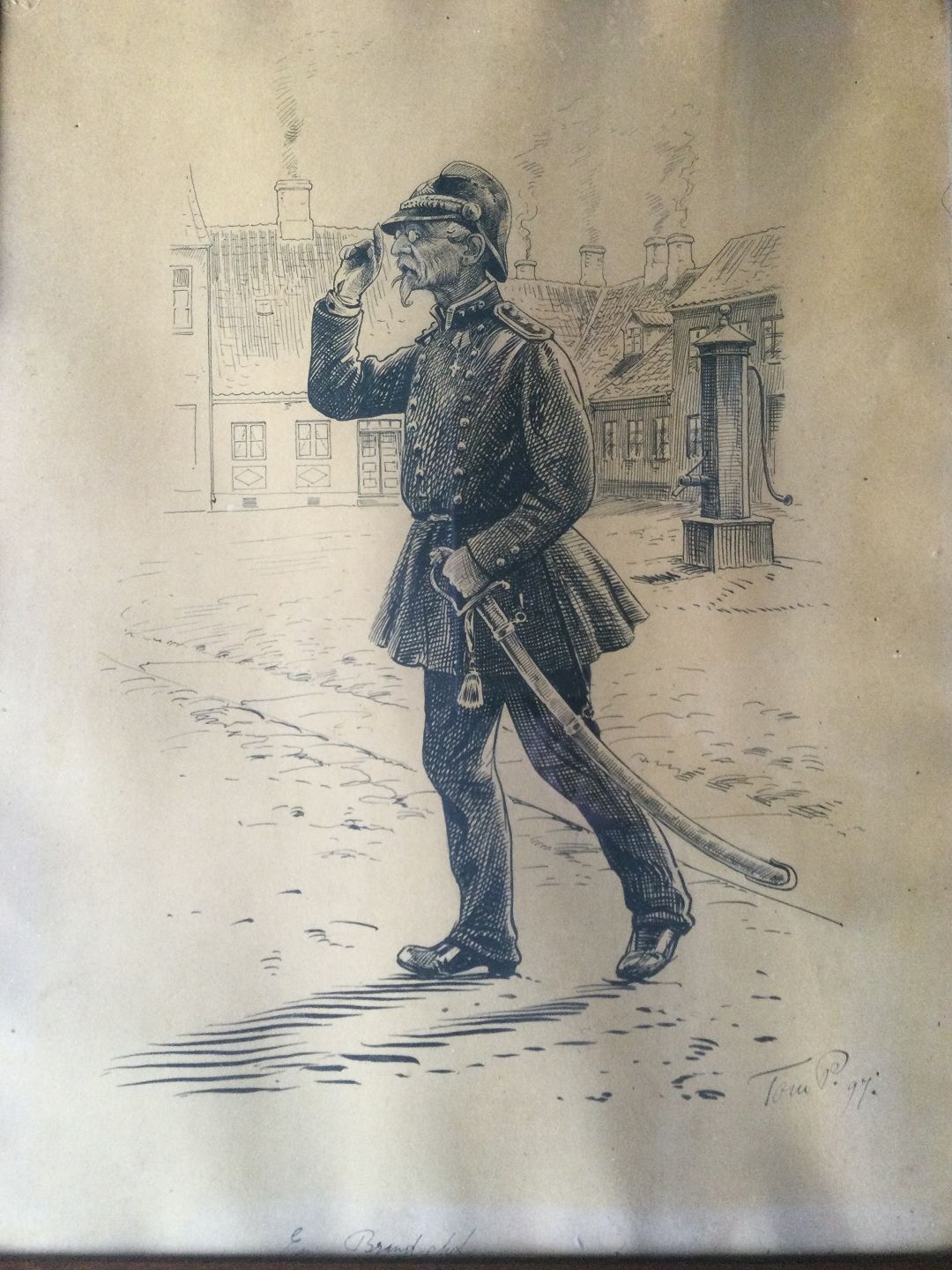 Text zugänglich auf Dänische: Tegning af Peter Tom-Petersen - "En brandchef 1897"