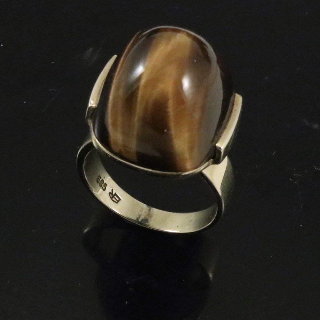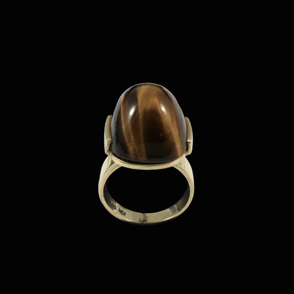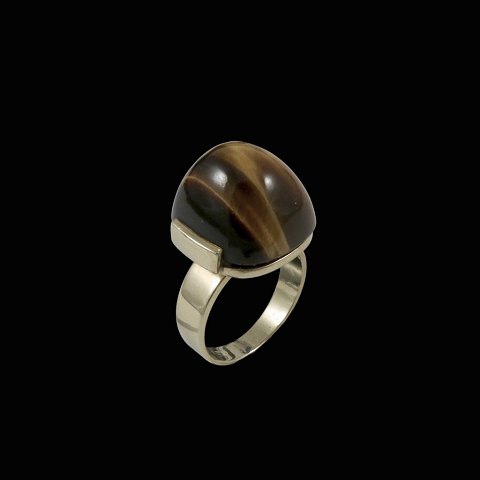 E. Råsånen. Ring i 14k guld med tigerøje.