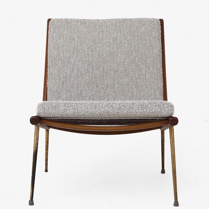 FD 134 - 'Boomerang' lænestol i teak, messing ben og nybetrukket hynder i Malou Raphia.