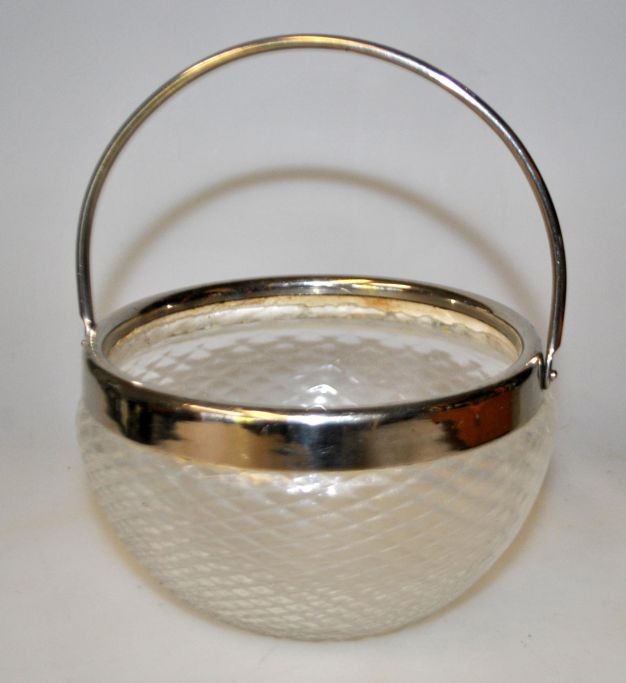 Sukker kumme, ca. 1910. Klart glas med vafler. Forsølvet hank og kant.