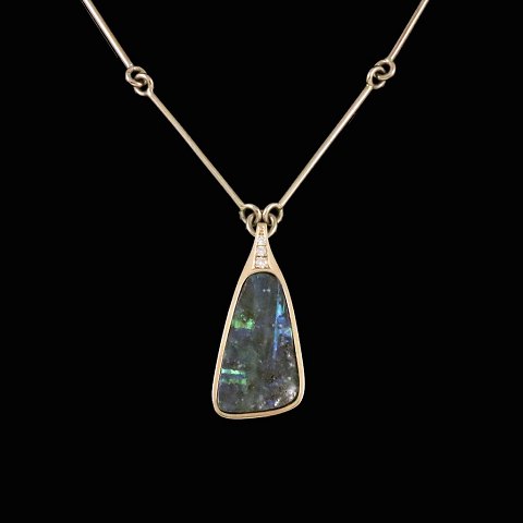 Jørgen Rasmussen. Halssmykke i 14k guld med Opal og brillanter.