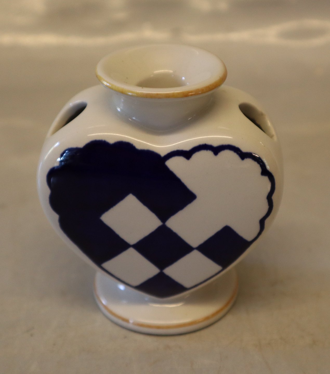 Blå Hjertevase 7,5 cm 2231 I fin stand stemplet Faience Blåt Aluminia Julehjerte Hjertestager I fajance