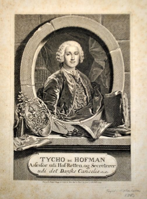 L. Tocque: Portræt af Tycho de Hofmann, 1745. Kobberstik. København, Danmark.