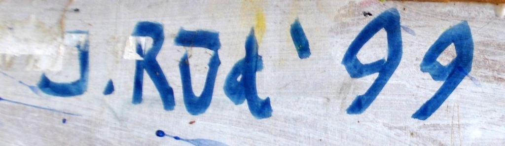 Rud, Jørgen (1960- ) Danmark: Komposition. Olie på lærred/plade. Verso signeret 1999. 99 x 133 cm.