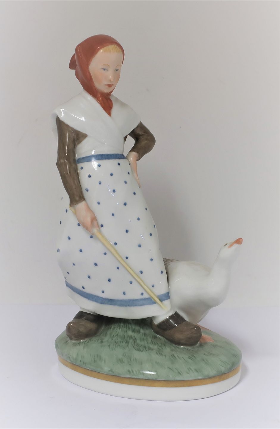Royal Copenhagen. Porcelænsfigur. Gåsepige i farver. Model 528. Højde 18,5 cm. (1 sortering)
