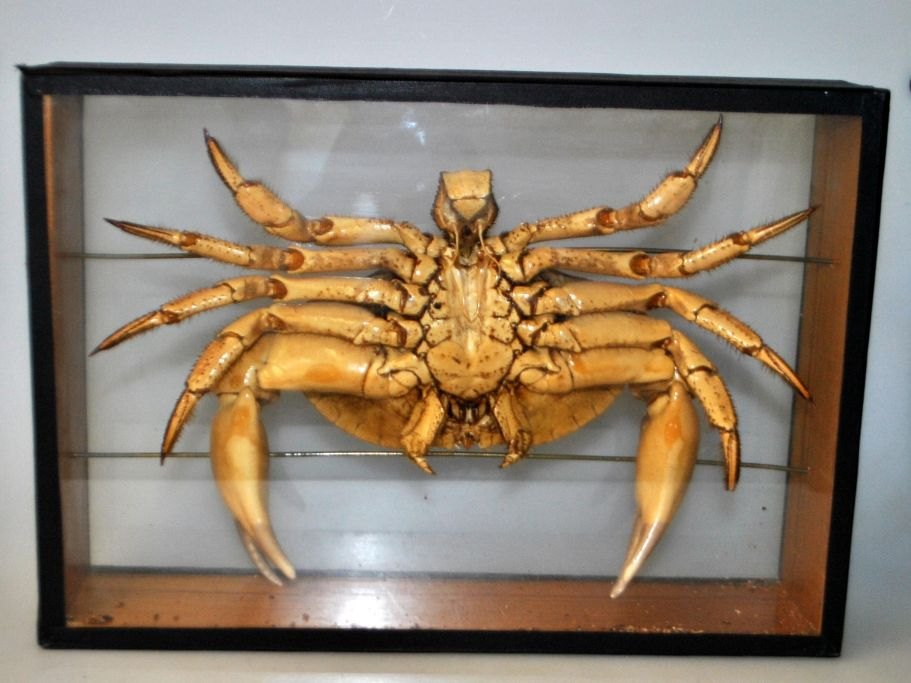 Stuffed crab. Mounted in display case, 20th century 33 x 23 x 7 cm.