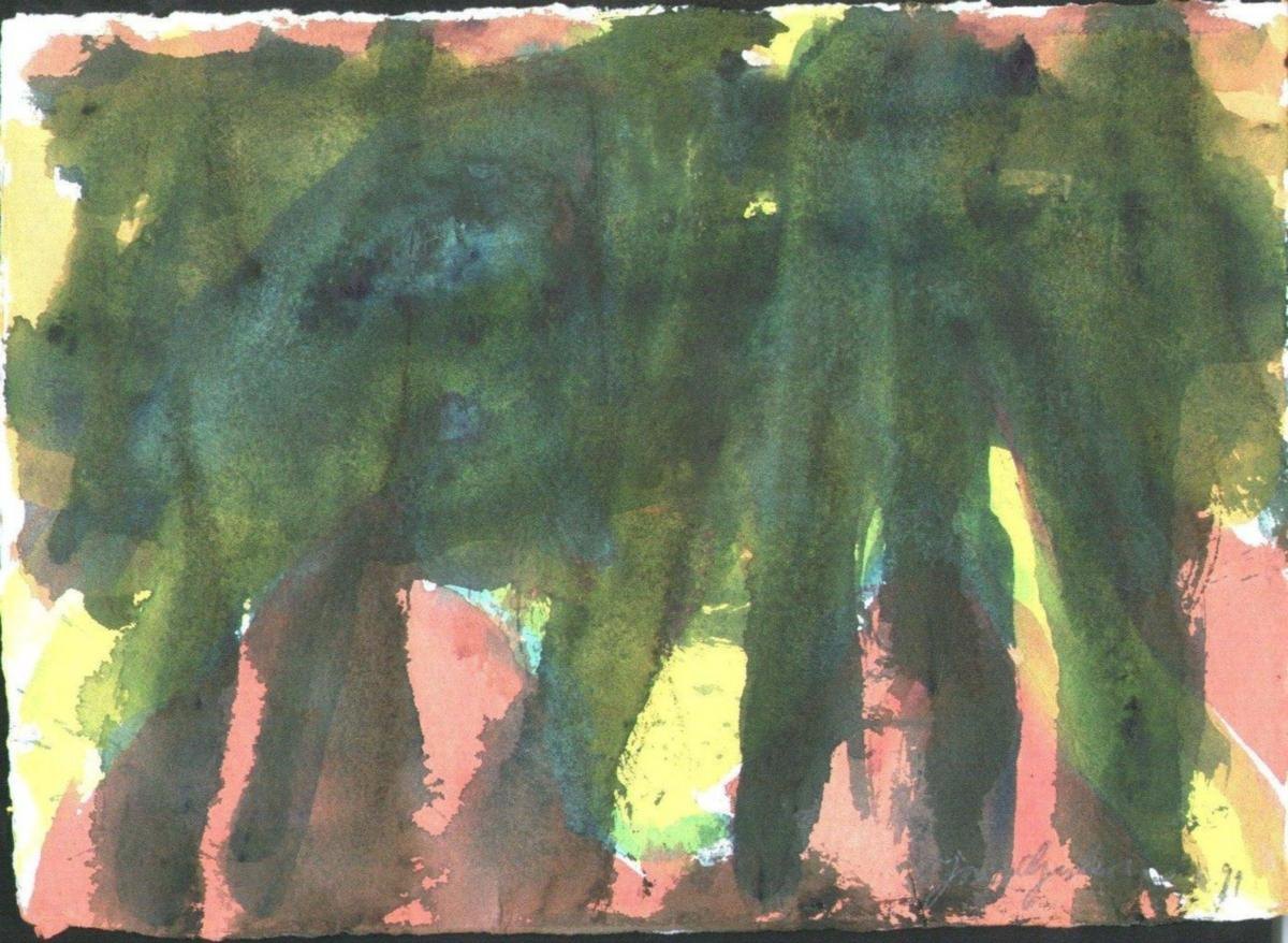 Gislason, Jon (1955-): Komposition. Akvarel på papir. Sign.: Jon Gislason 99. 25 x 36 cm.