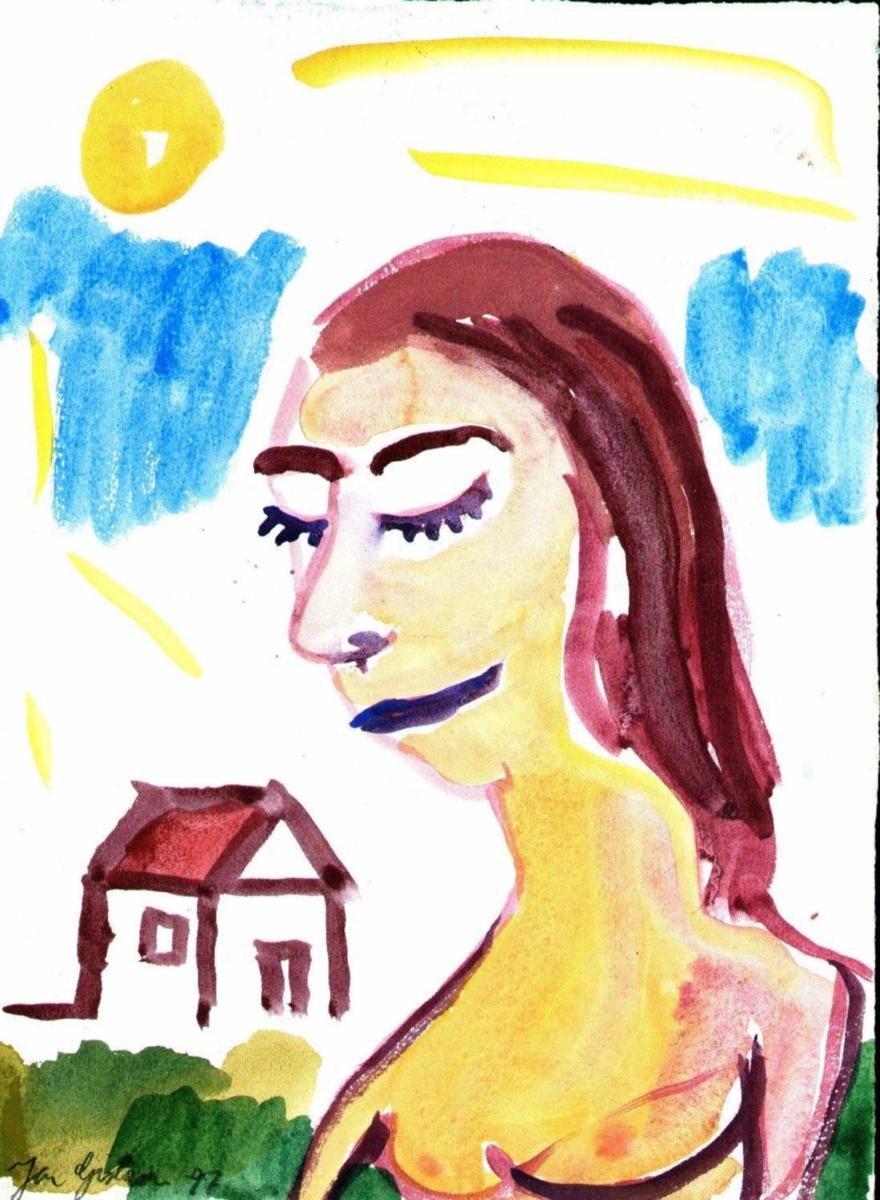 Gislason, Jon (1955-): Portræt. Akvarel på papir. Sign.: Jon Gislason 97. 38 x 28 cm.
