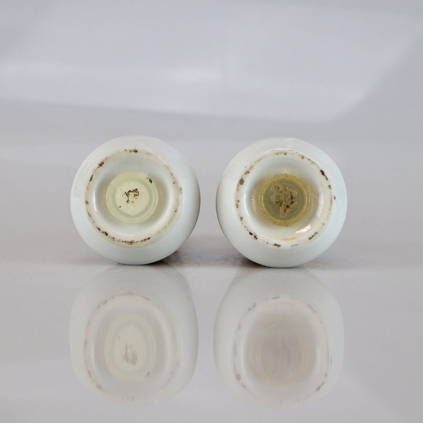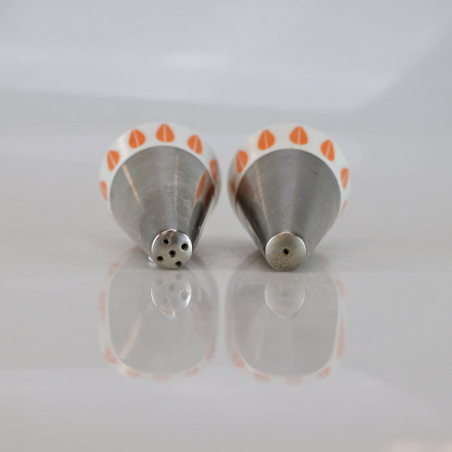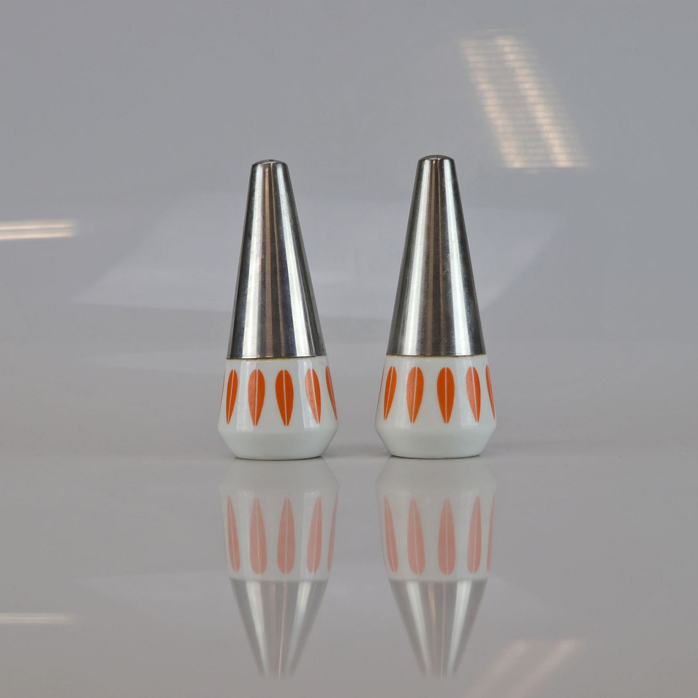 Sæt med saltbøsse og peberbøsse sæt i porcelæn med motiv af orange lotusblade