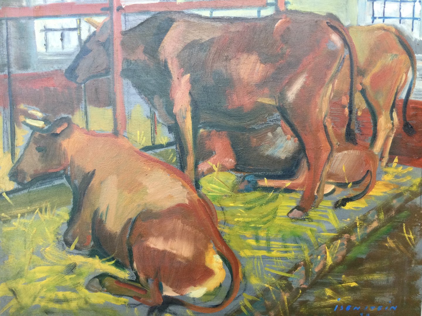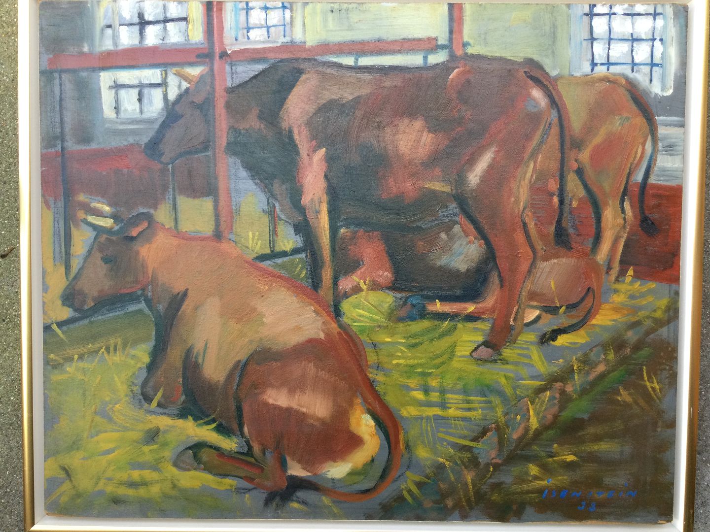 Maleri af Harald Isenstein 1938 - Køer på stald.