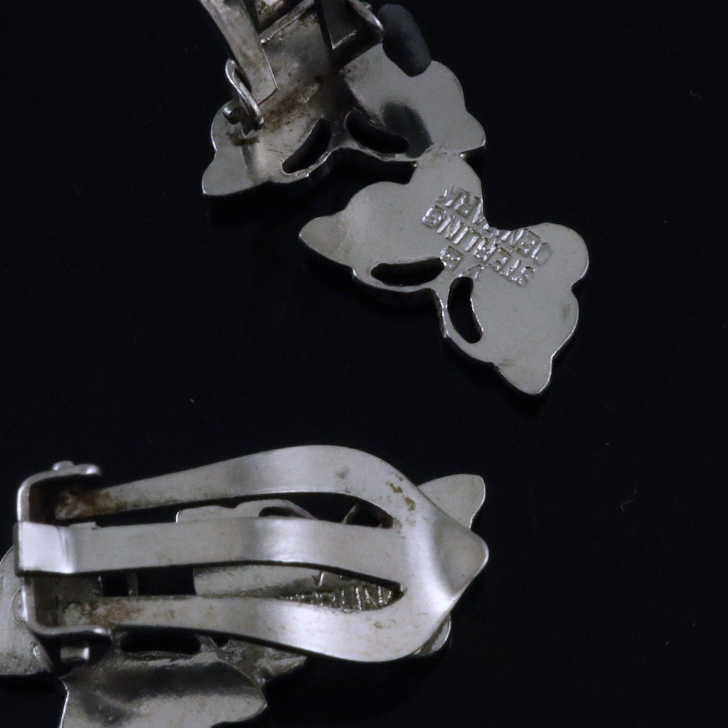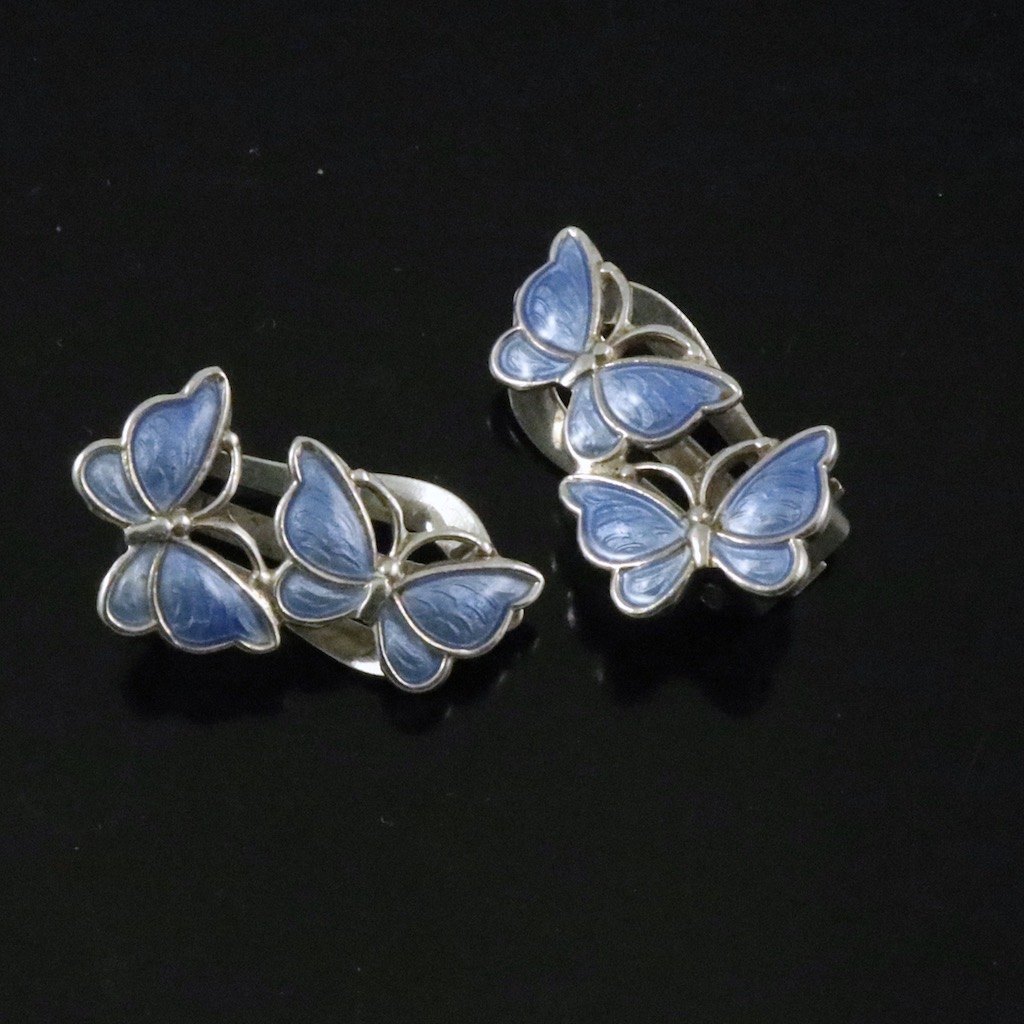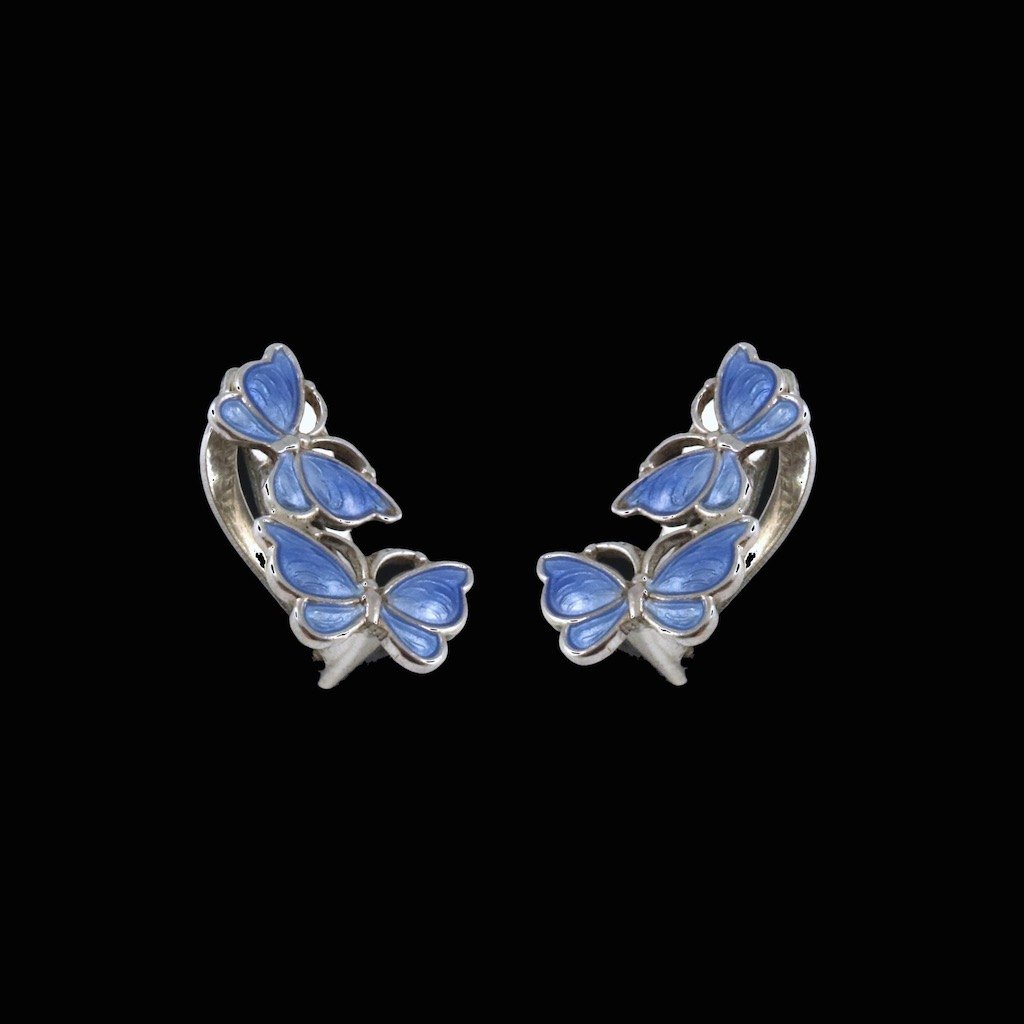 Volmer Bahner. Øreklips i sterling sølv med blå emalje
