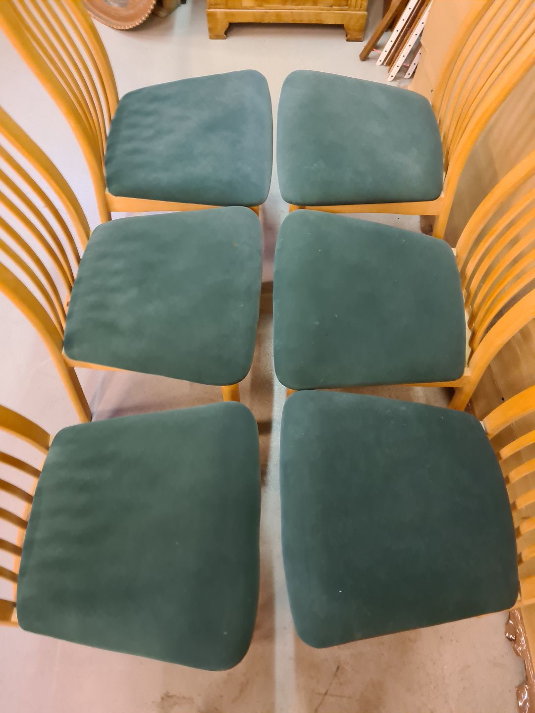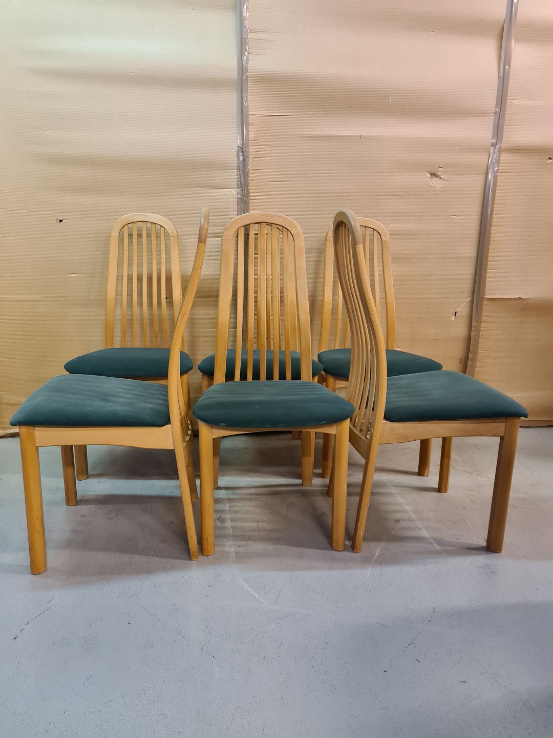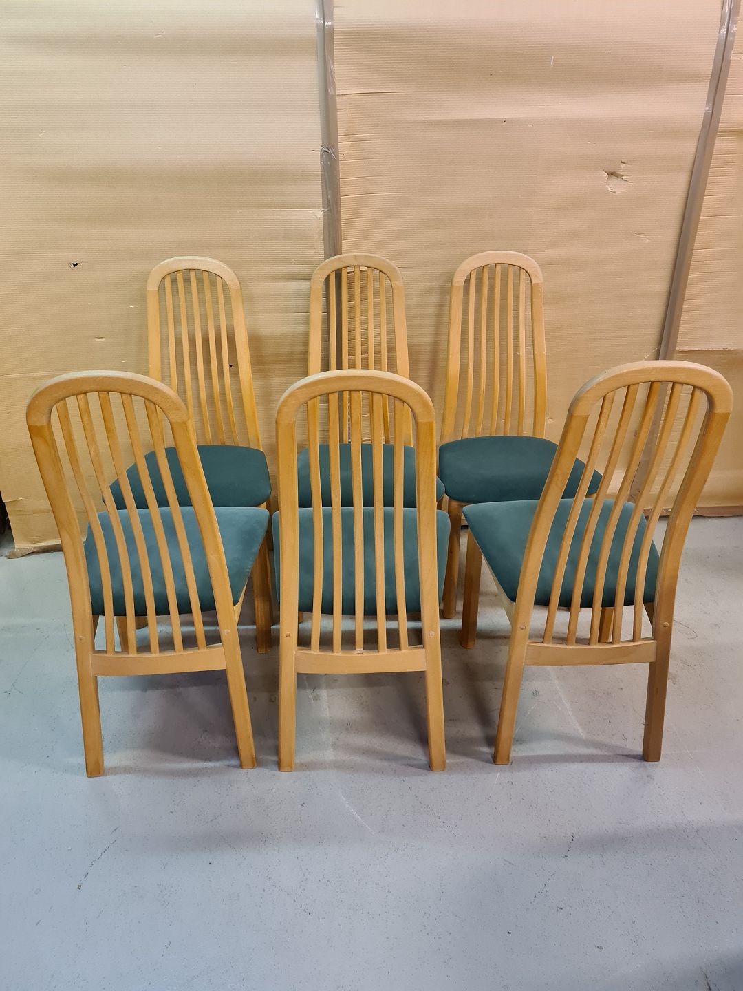 Spisebord med 1 tillægsplade og 6 stole i massivt bøgetræ, fra 2000erne.