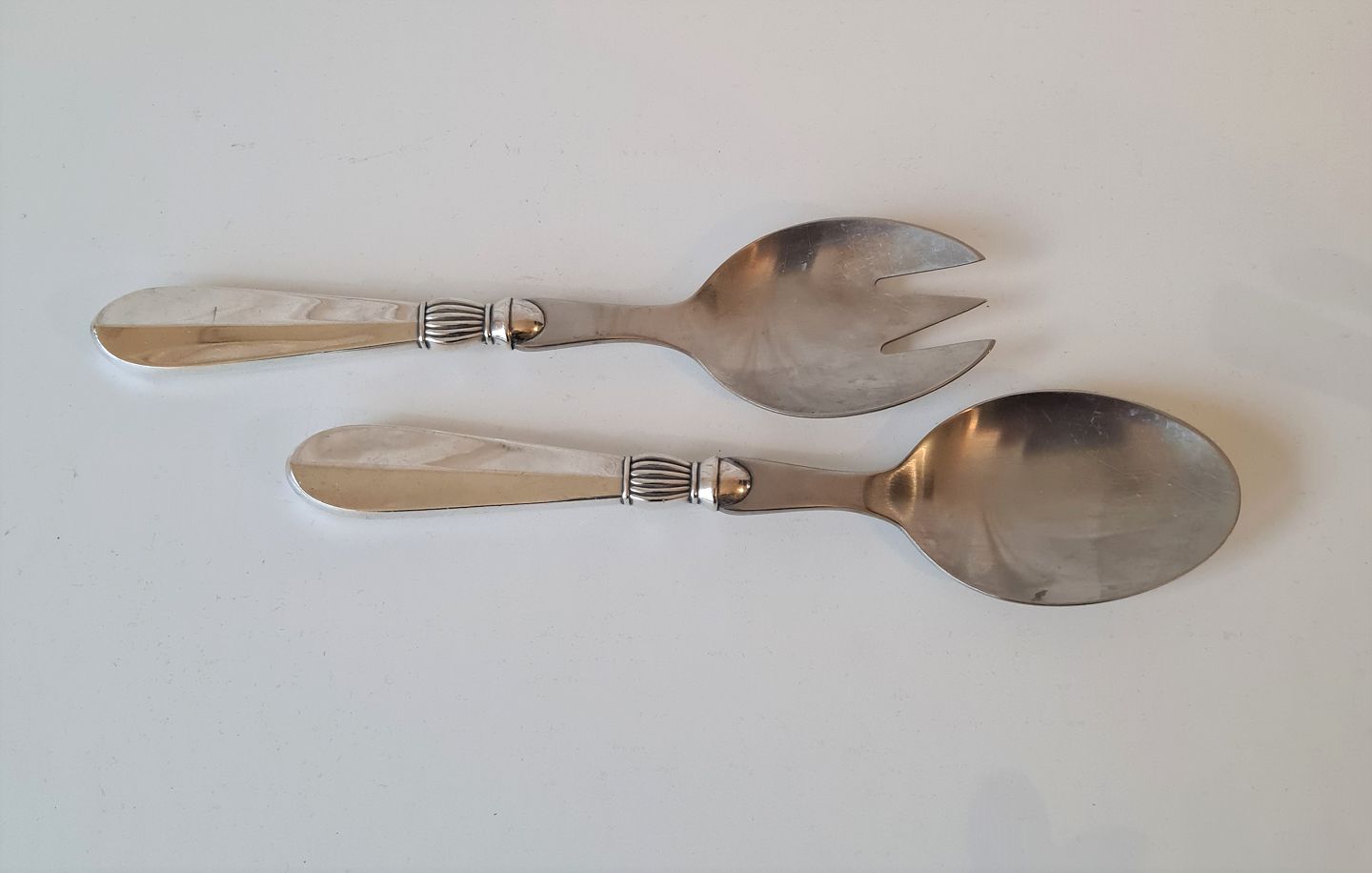 Gråsten salatbestik i stål og sølv
