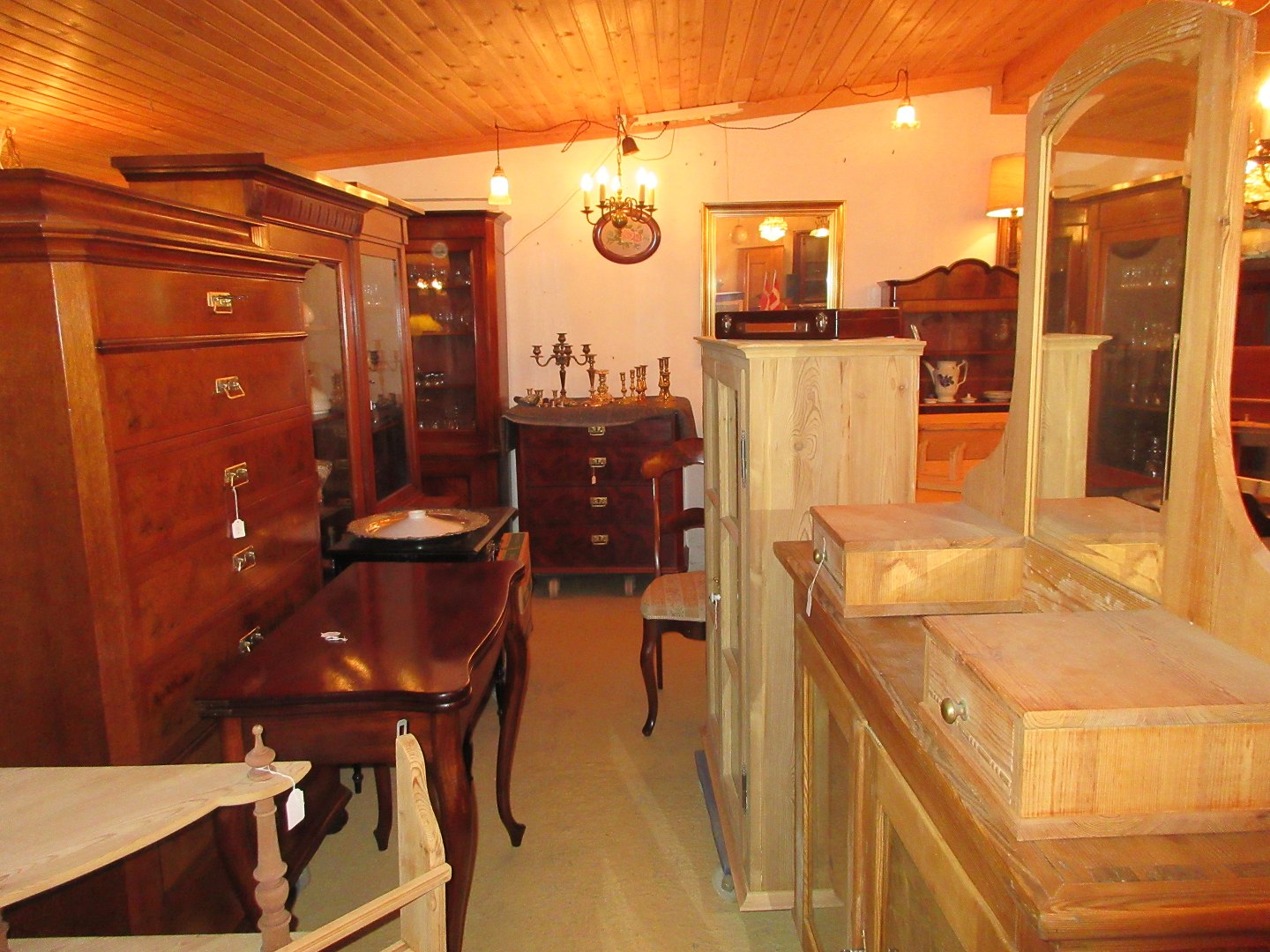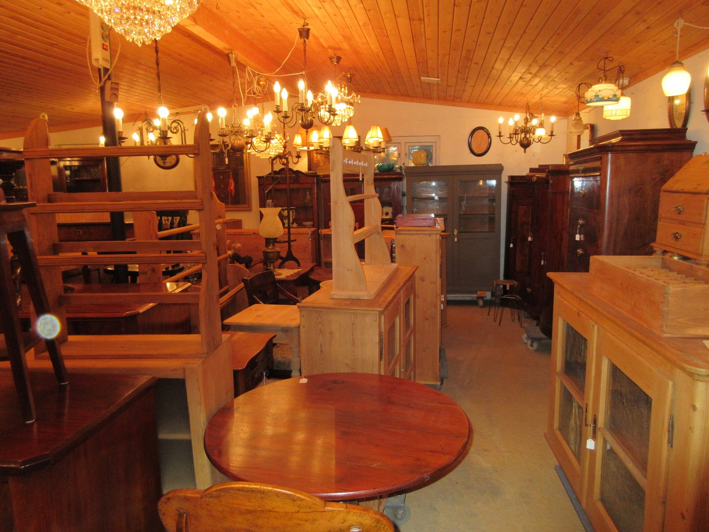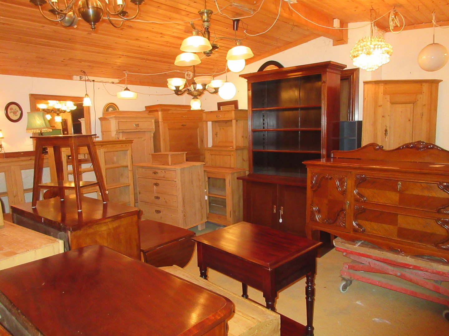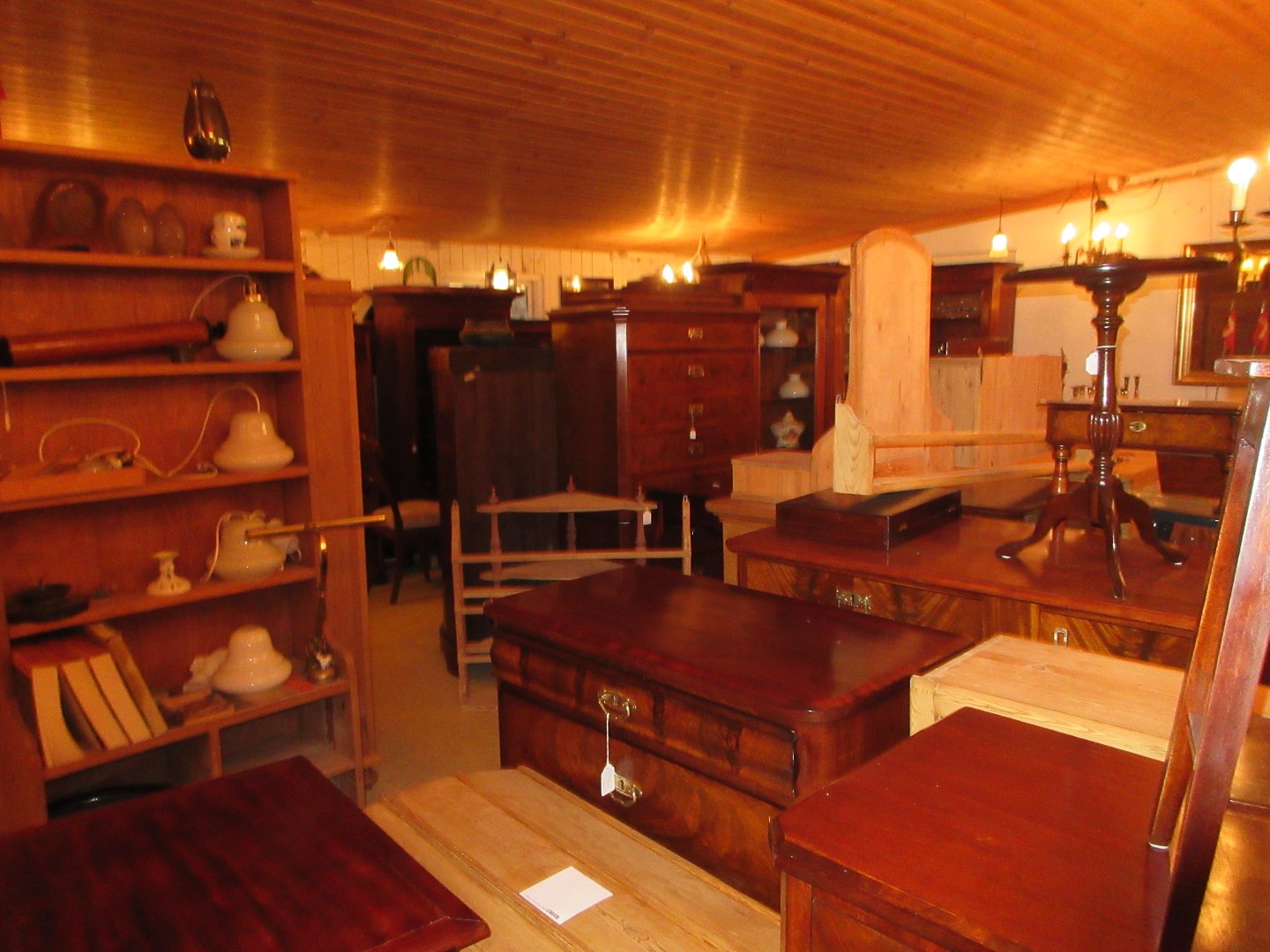 Stor salgsudstilling med restaurerede møbler håndpolerede mahognimøbler, afsyrede fyrretræsmøbler, malede træmøbler, kun originale gamle og antikke møbler.