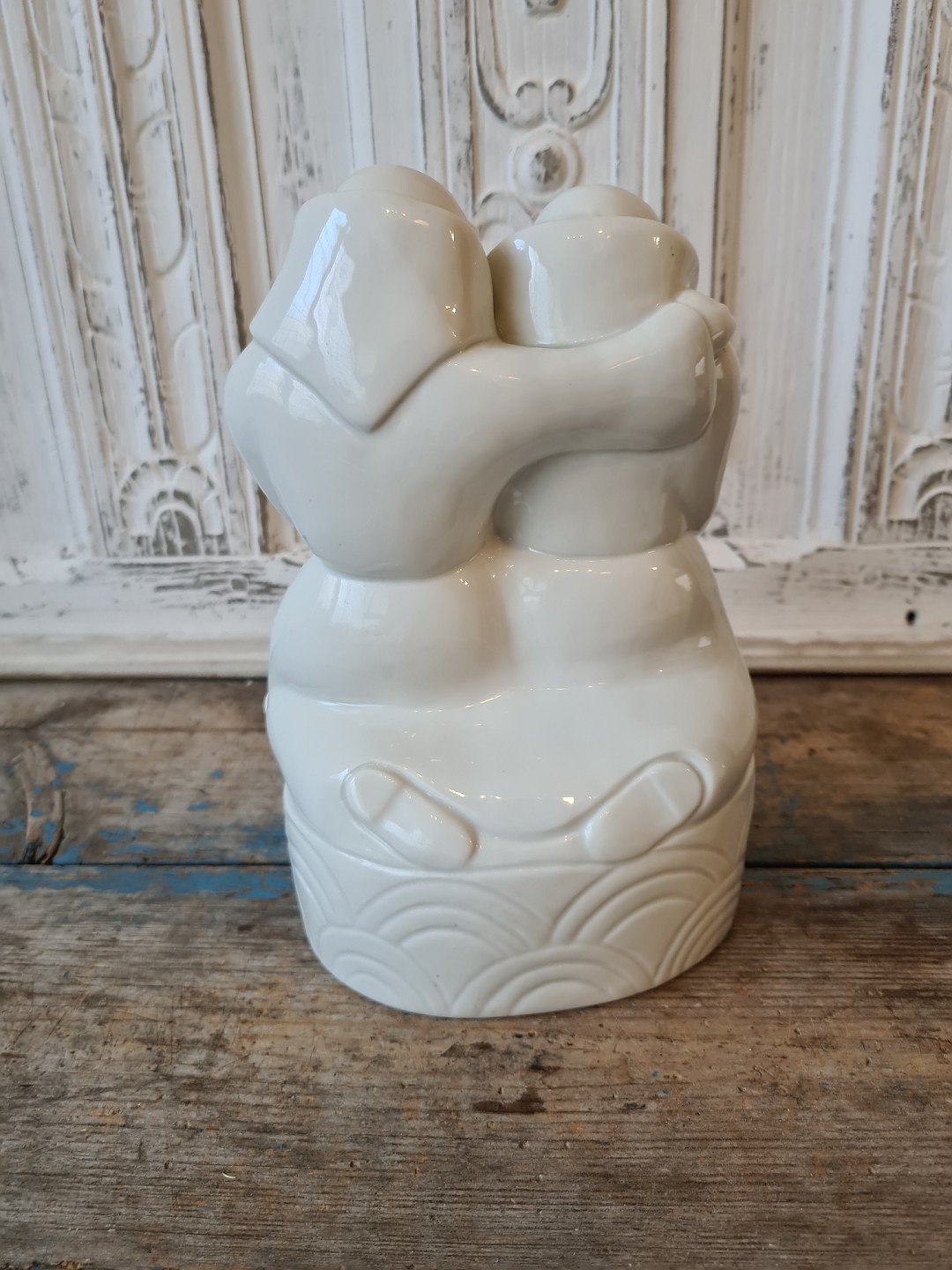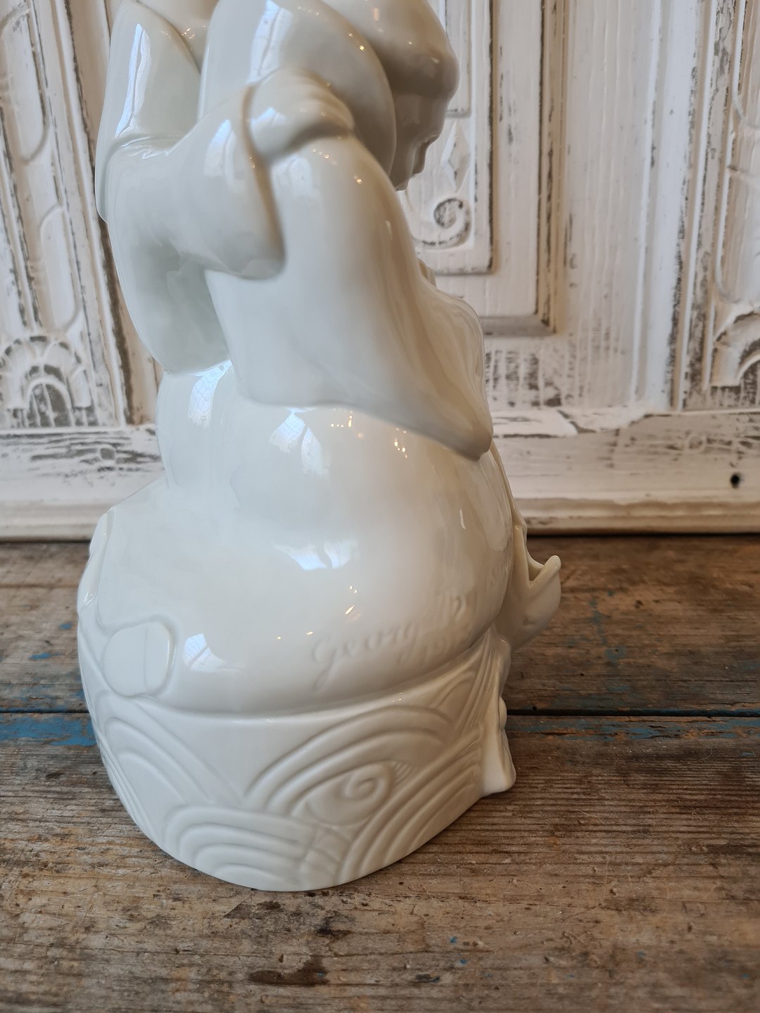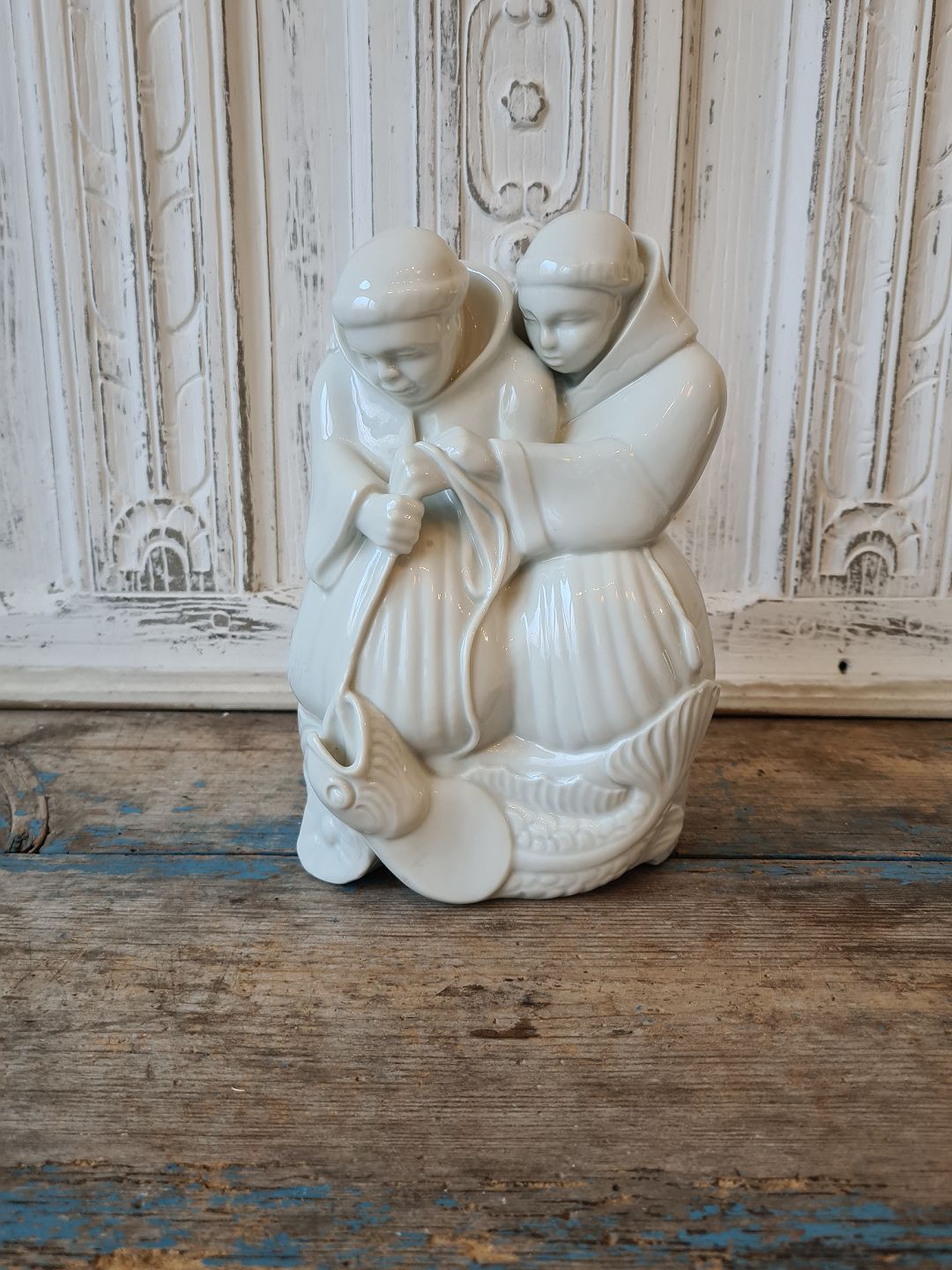 Royal Copenhagen - Georg Thylstrup - Juliane Marie Blanc de Chine figur - to munke med fisk