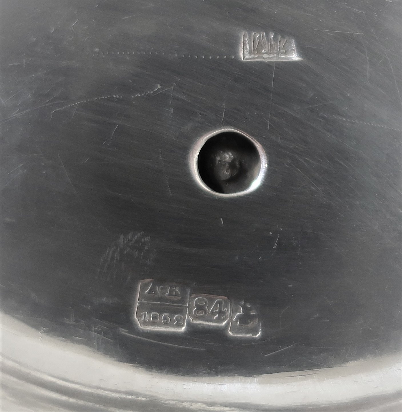 Russisk sølv tekande (84). Stemplet AK. Produceret 1852. Længde 20 cm.