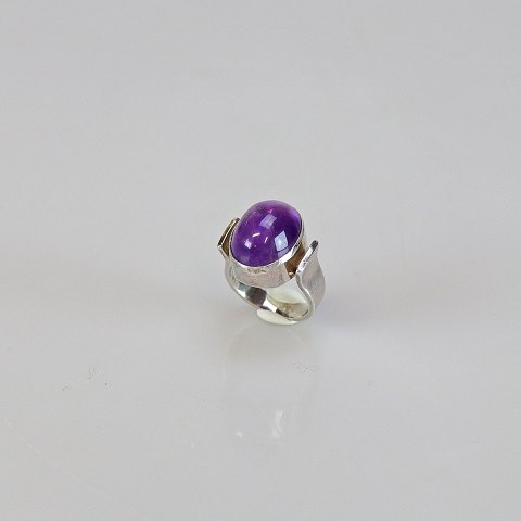 Sølvring med oval ametyst. Størrelse 50