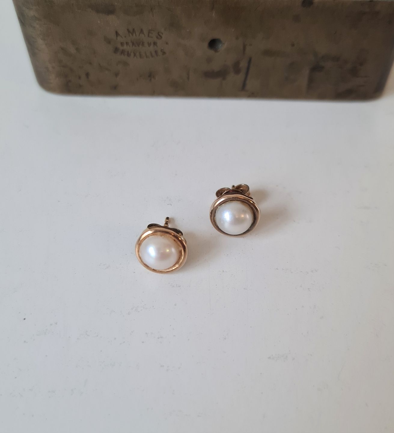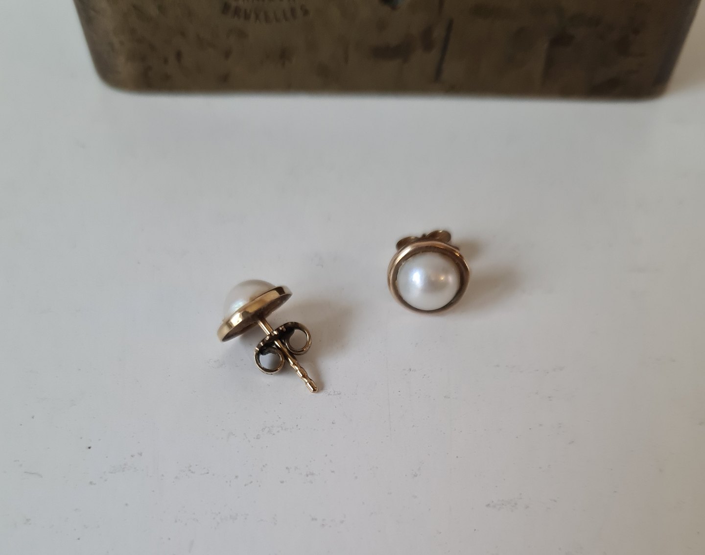 Par vintage ørestikker i 8 kt guld med Akoya perler