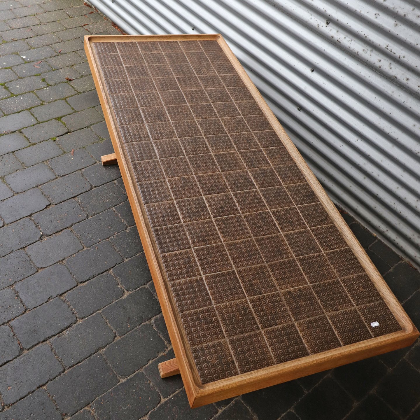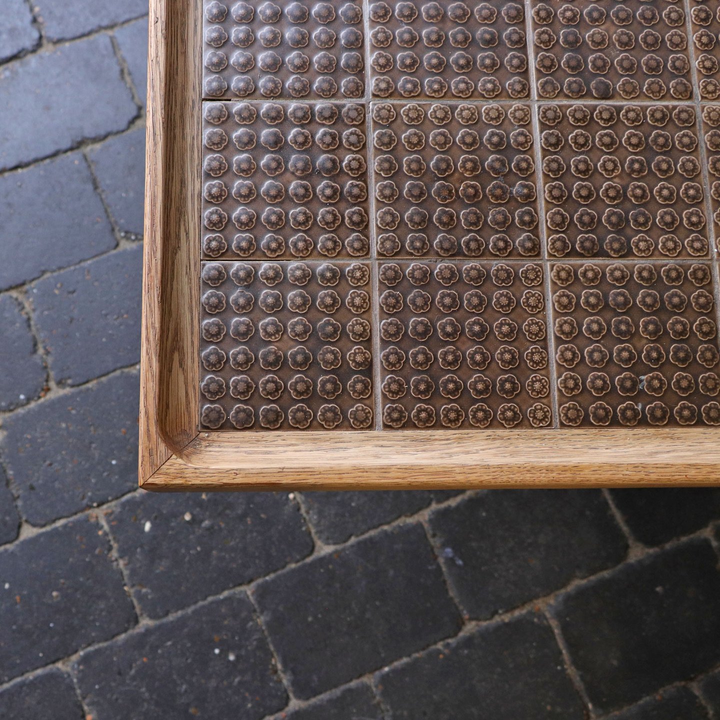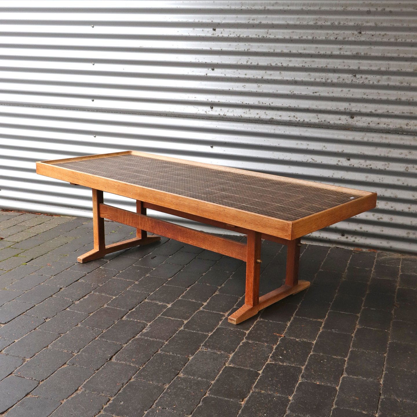 Aflangt sofabord i egetræ belagt med umbra kakler