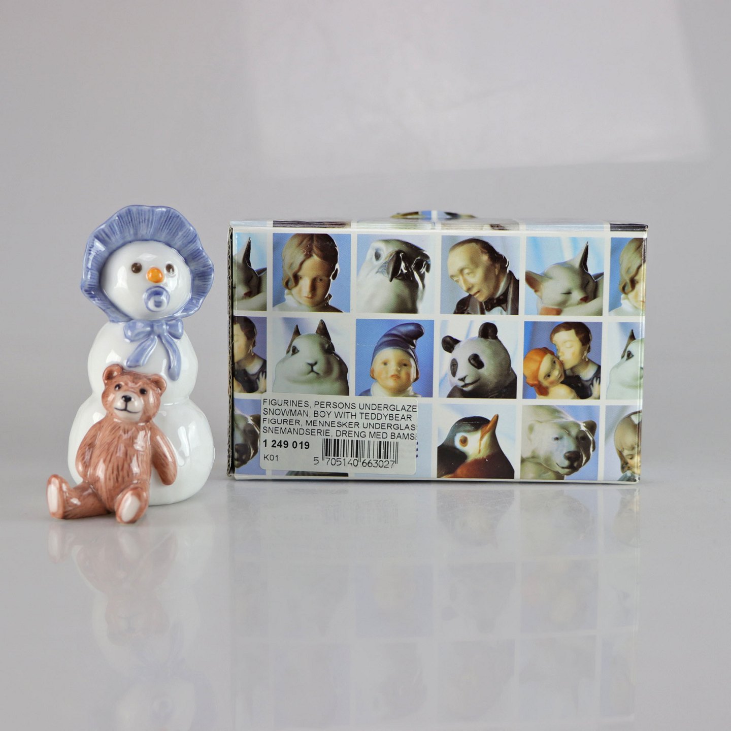 Kgl. figur i porcelæn af dreng med bamse nr. 019 fra Snemandsserien