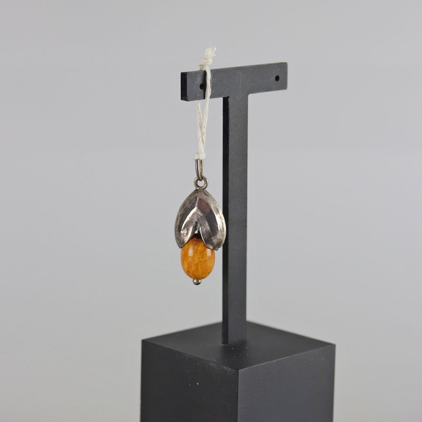 Halskædevedhæng med abstrakt motiv af nød omkranset af blade